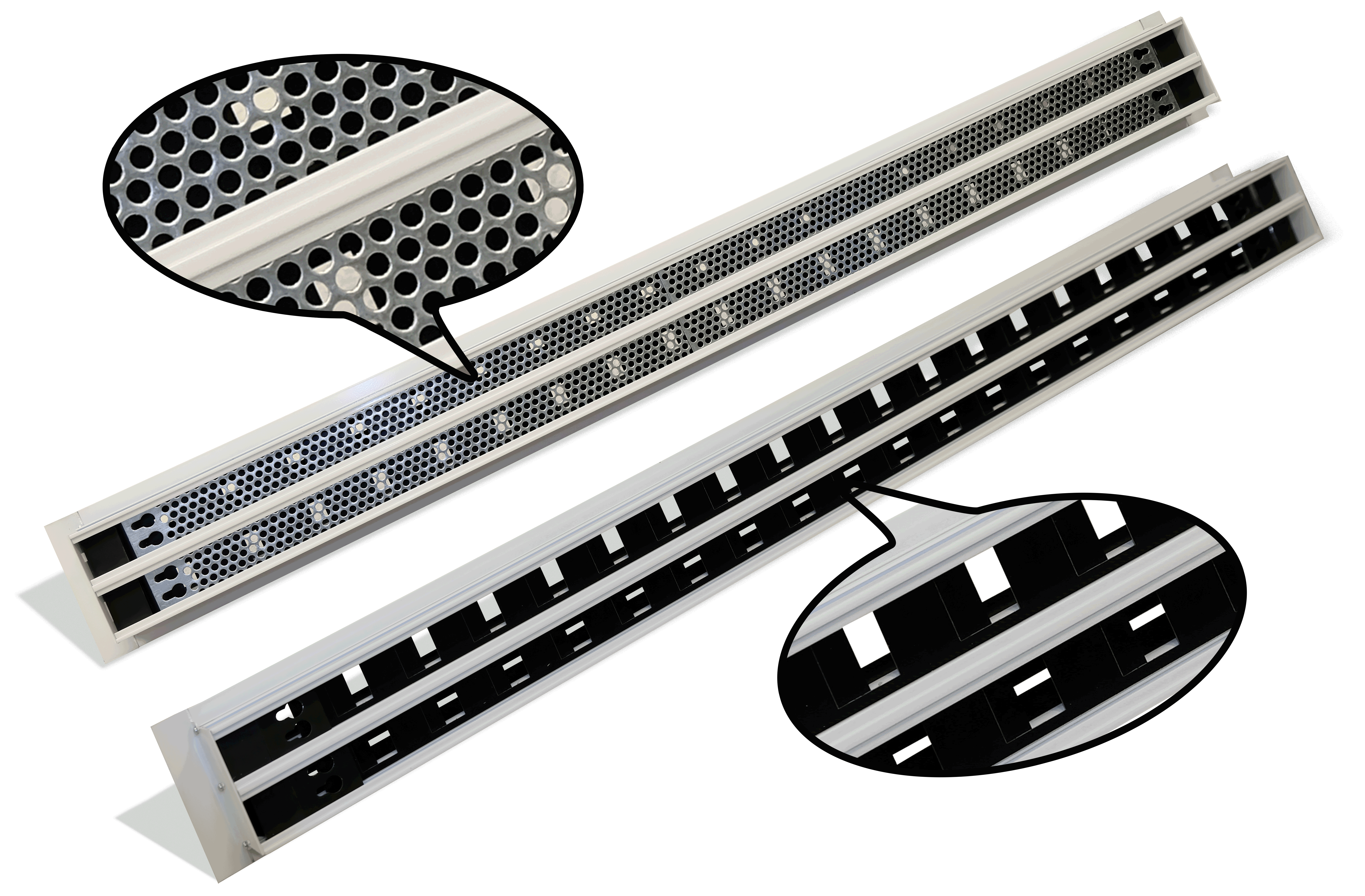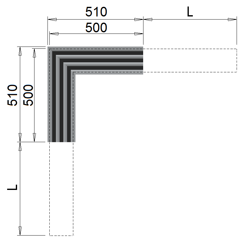 Elemento estetico di raccordo tra i due linee di diffusori lineari con angolo di 90° e lunghezza 500 mm per lato. Non ha funzionalità di ventilazione.