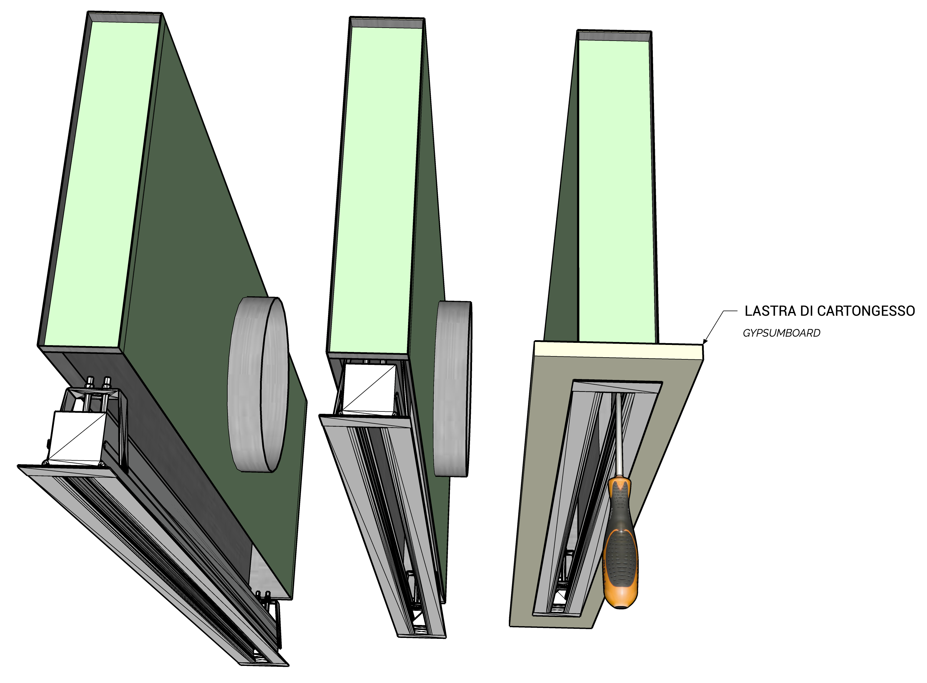Dimensioni plenum e sistema di montaggio con ponti di fissaggio