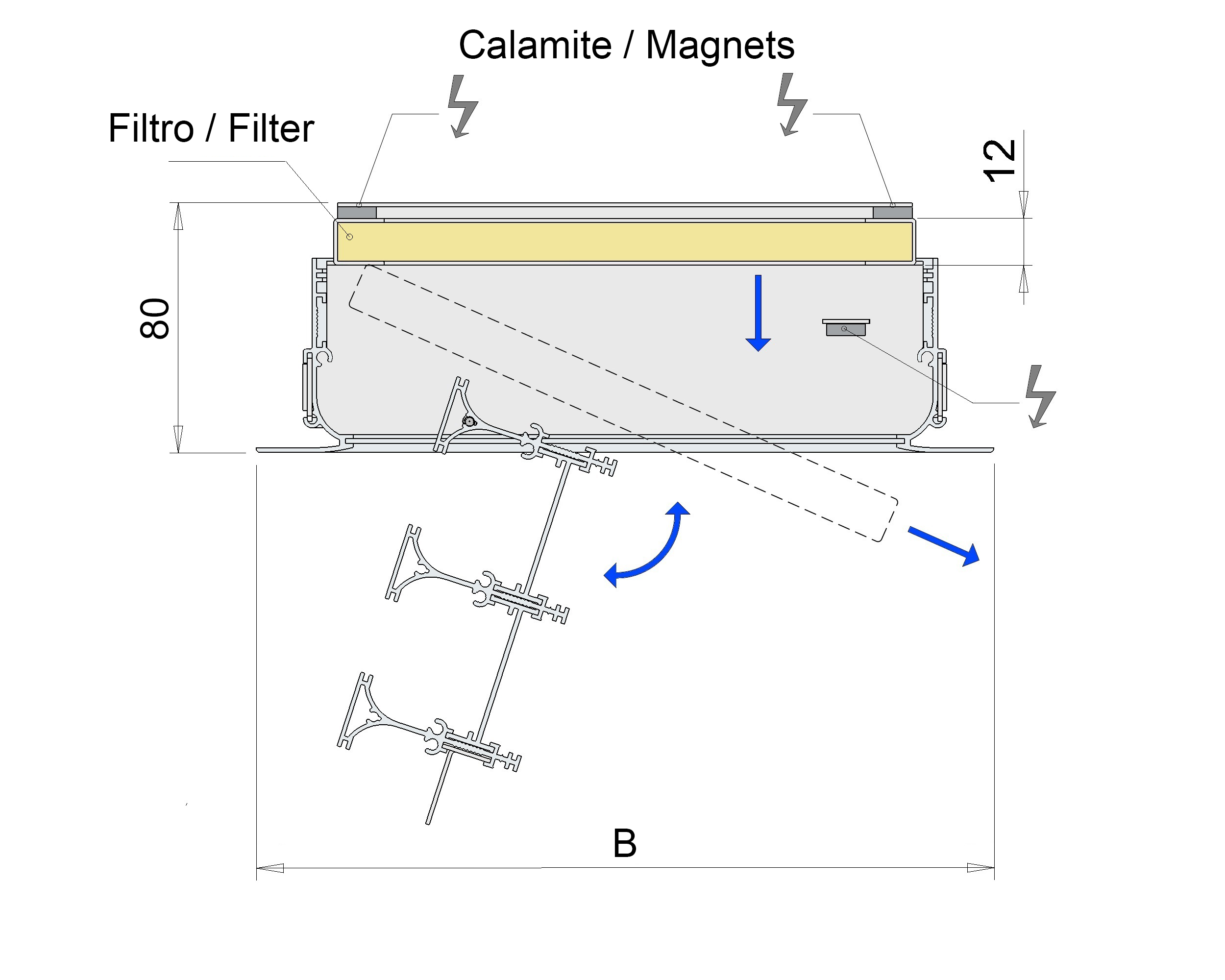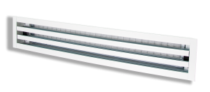 Sono costruiti a mezzo di profili in alluminio estruso lavorati in modo da ottenere un design altamente aerodinamico e esteticamente gradevole, con lunghezze standard di 800-1000-1500-2000 mm per minimo 3 e massimo 4 feritoie. Verniciatura standard del diffusore RAL 9016, a richiesta può essere verniciato con altri colori con polveri a base di resine epossidiche posate elettrostaticamente ed essiccate al forno. Questo tipo di verniciatura è resistente ad eventuali urti e abrasioni, e mantiene inalterate nel tempo le caratteristiche estetiche. Il fissaggio del diffusore al plenum è effettuato mediante ponti di montaggio non in vista. Il diffusore è provvisto di apposite linguette all’interno del pacco alettato che permettono di aprire lo stesso a libro per effettuare la sostituzione del filtro senza la necessità di dover smontare tutto il diffusore.