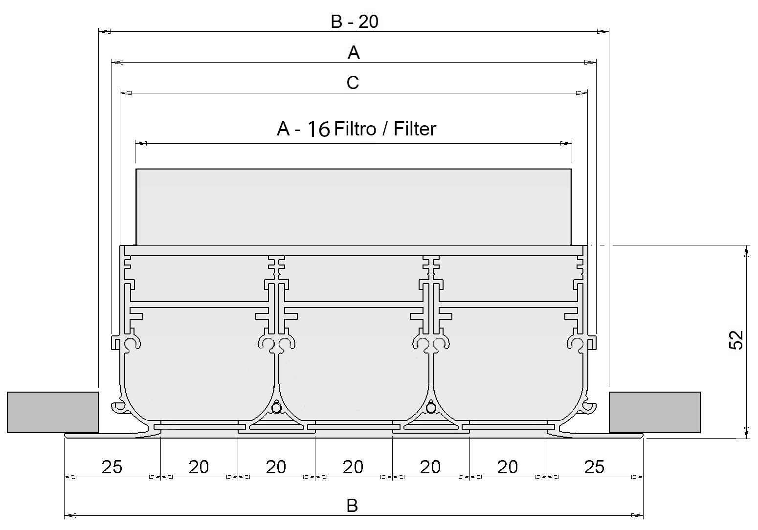 | numero feritoie | L | Dimensioni plenum | ||||||