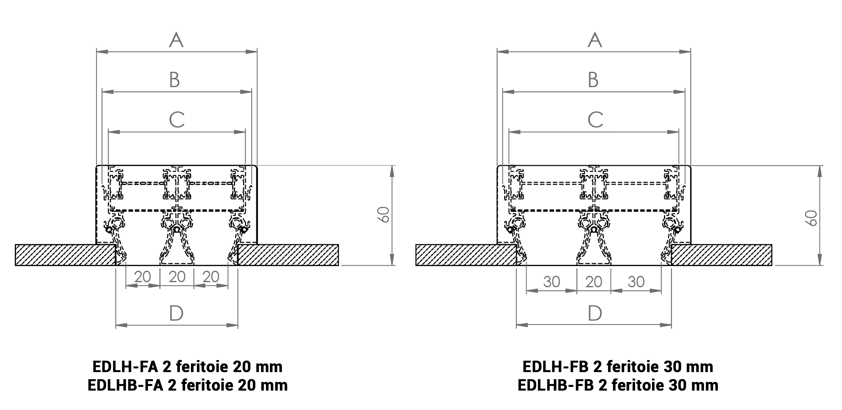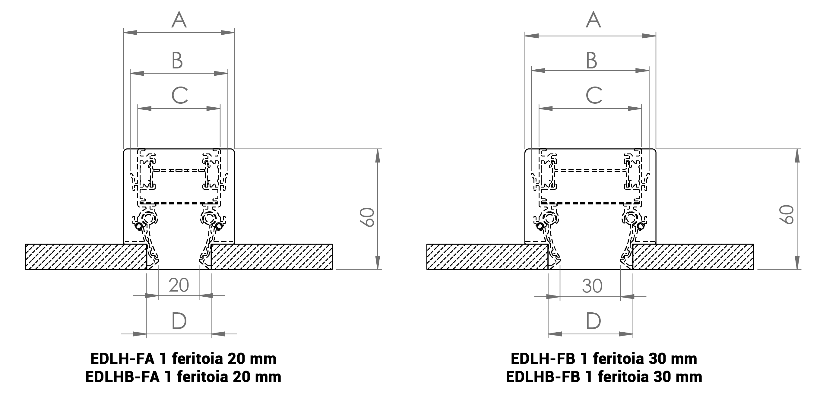 EDLH - EDLHB due feritoie dimensioni