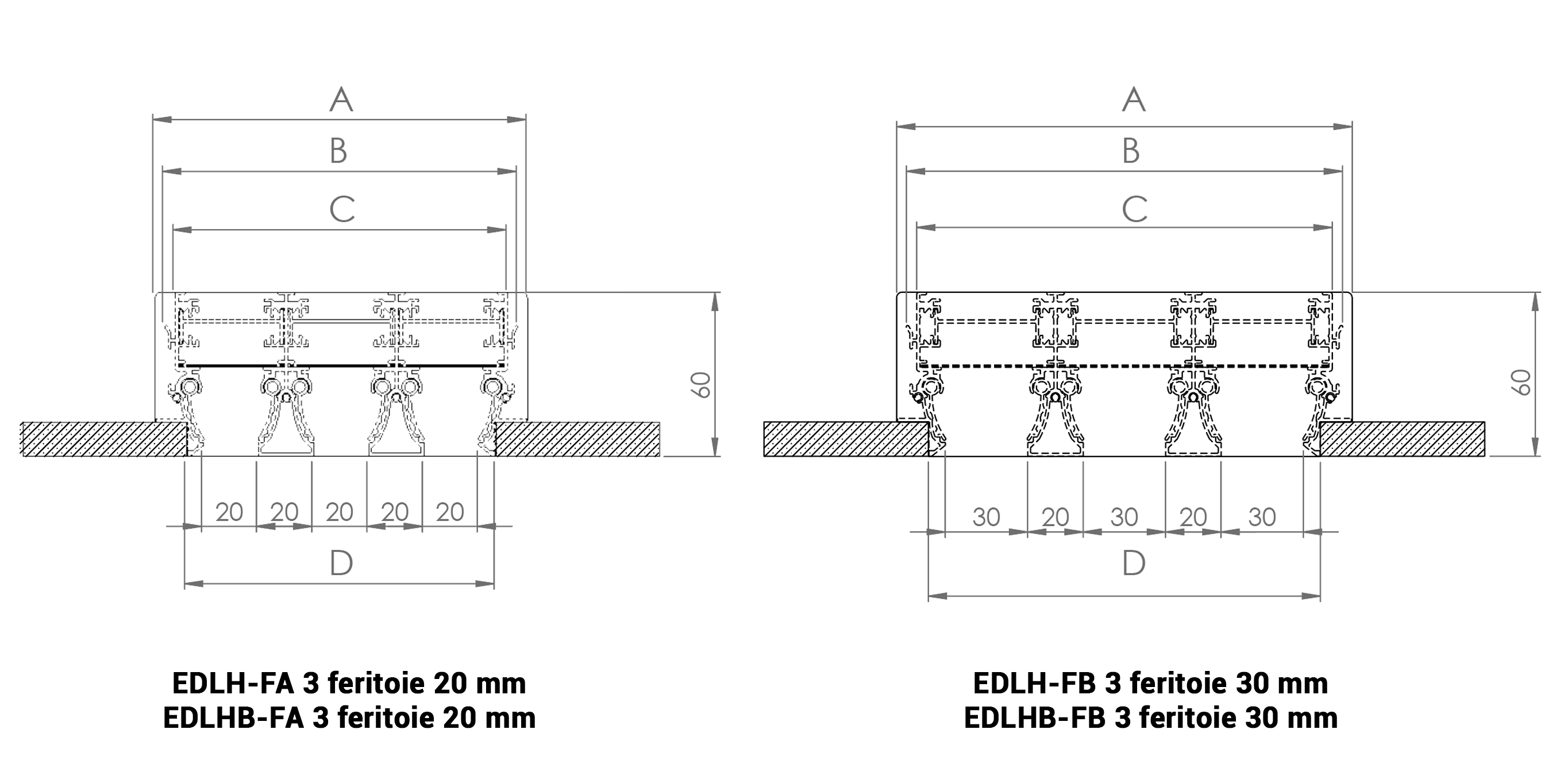 | Angolo estetico senza deflettori | EDLH-FA | EDLH-FB | EDLHB-FA | EDLHB-FB |