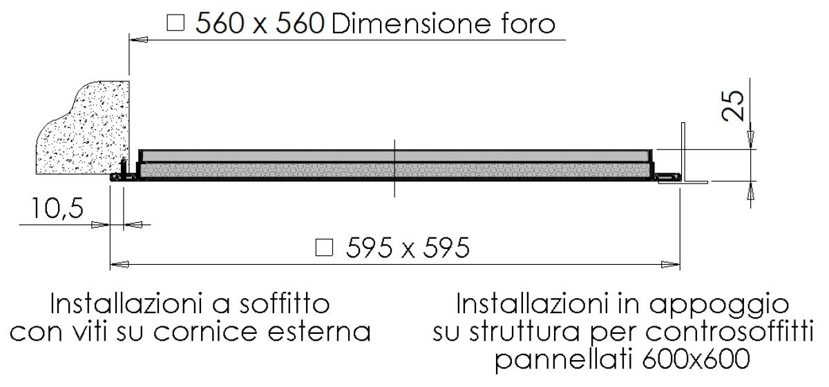 Diffusori da soffitto quadrato con piastra frontale forellinata.