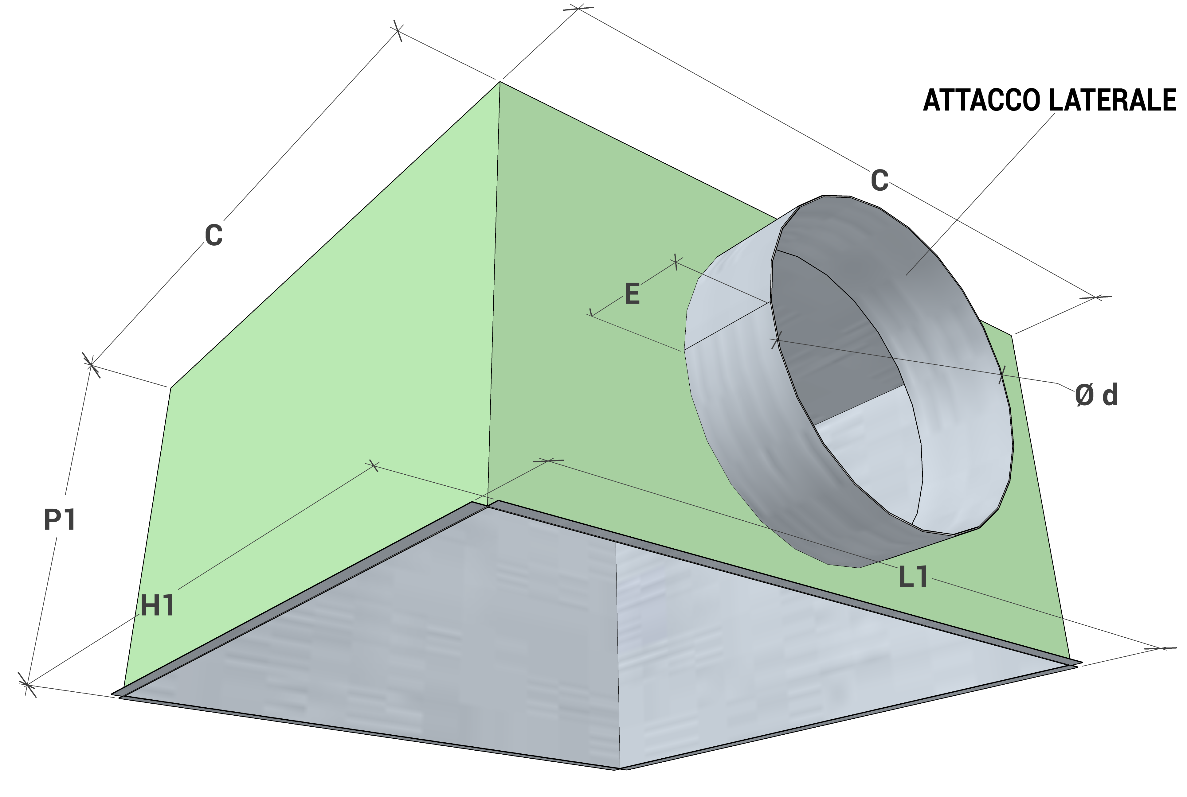 | Modello | Dimensioni esterne L1 x H1 | Ø d | P1 | 〼 C | E |