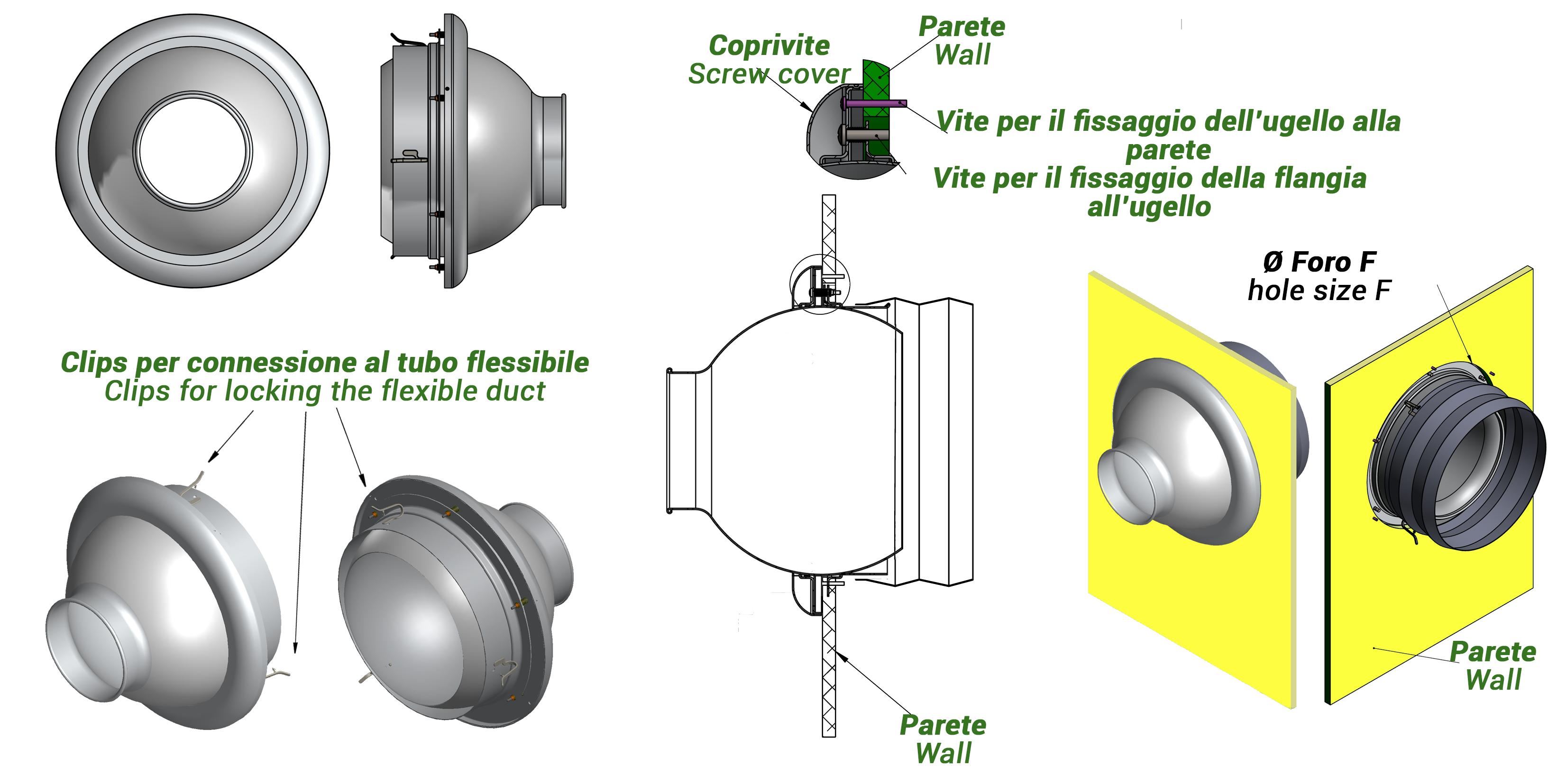 Installazione: con flangia a parete.