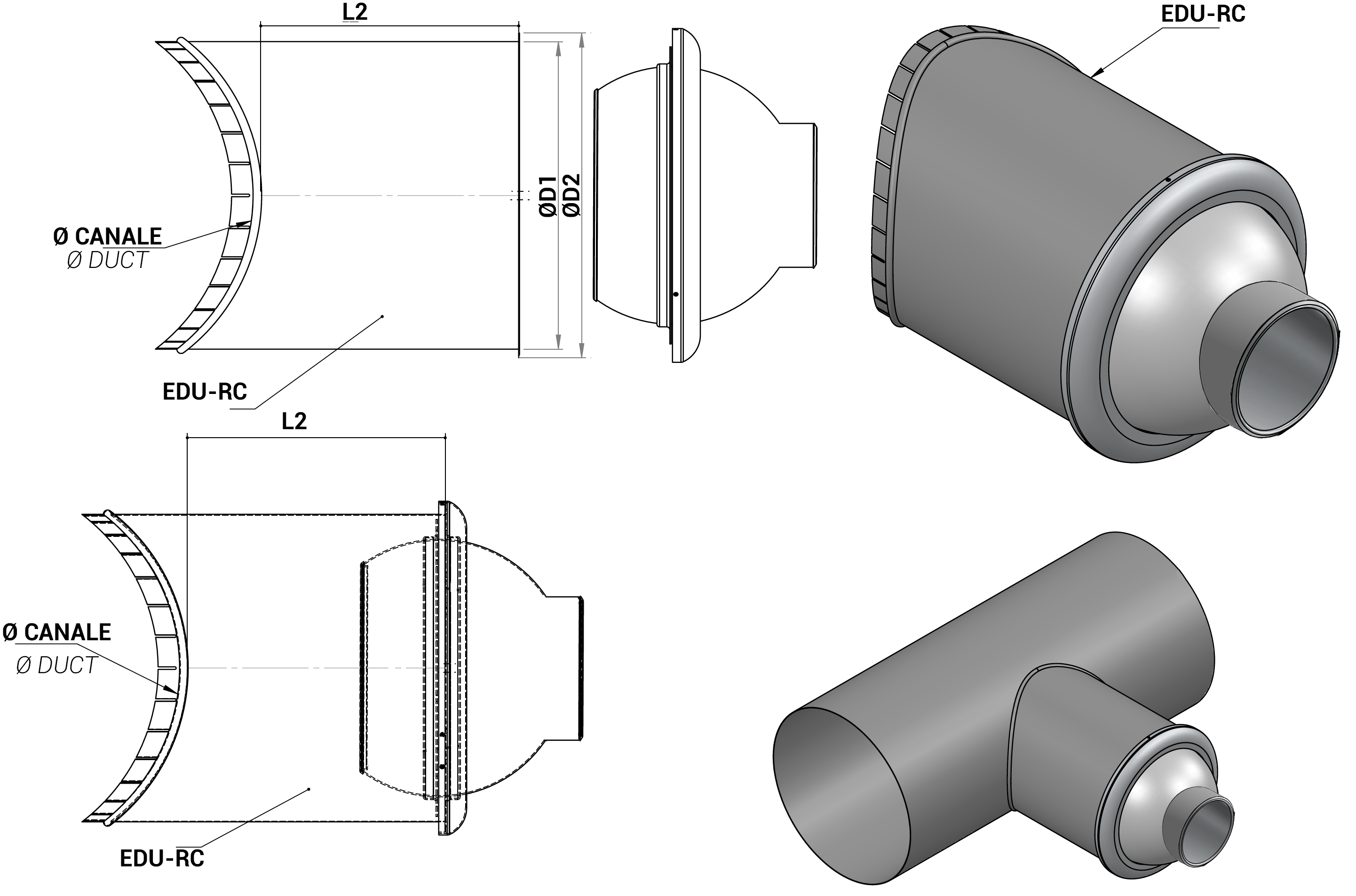 | Modello | L2 | Ø D1 | Ø D2 | Ø canale | |
