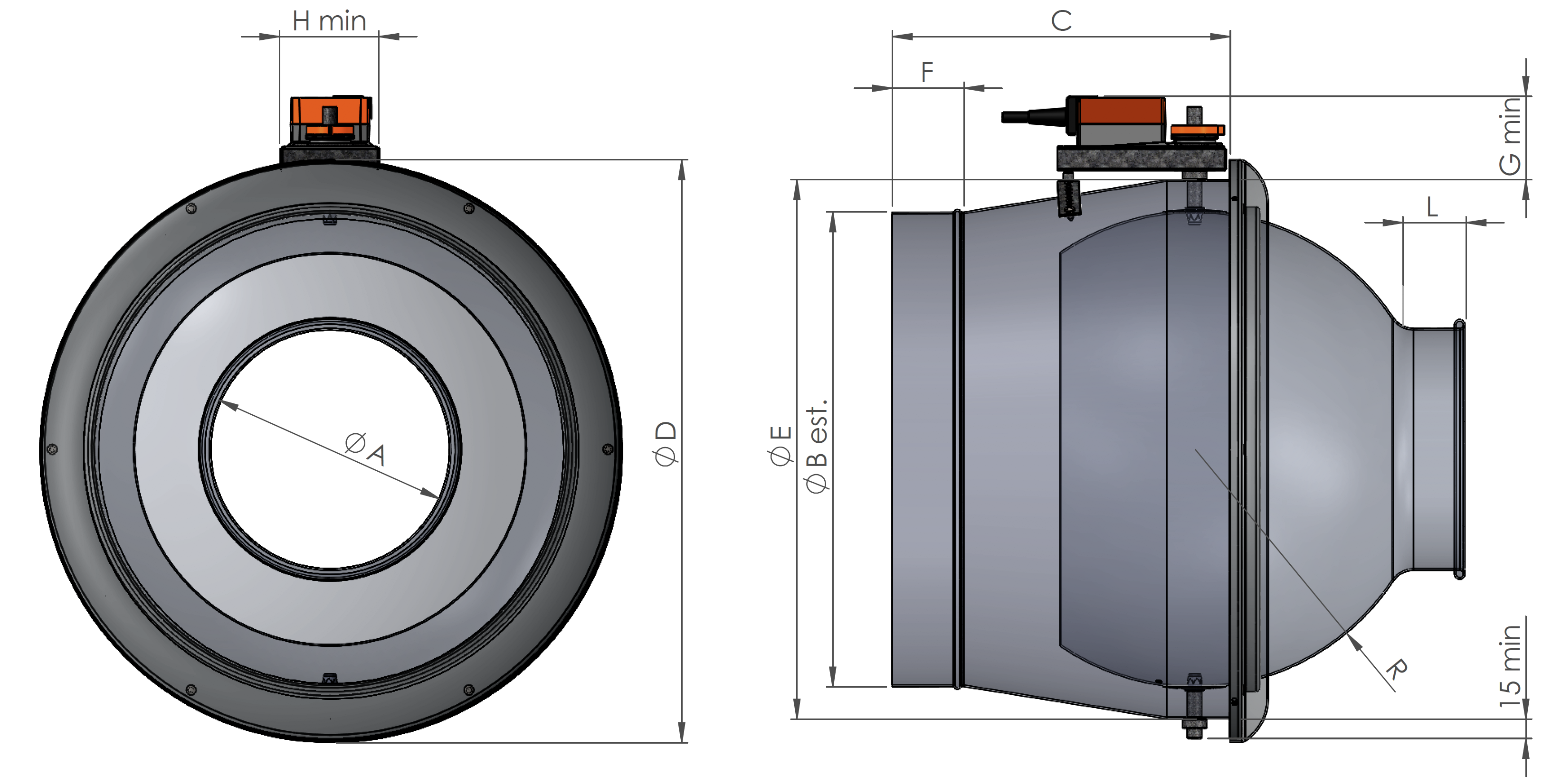 | Dn | A | B | C | D* | E | F | G min | H min | MOT. ON / OFF | MOT. MODULANTE |
