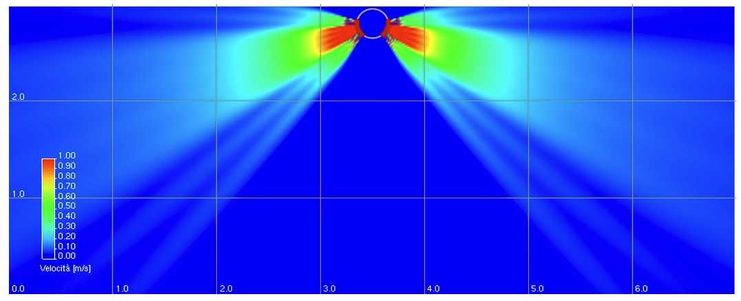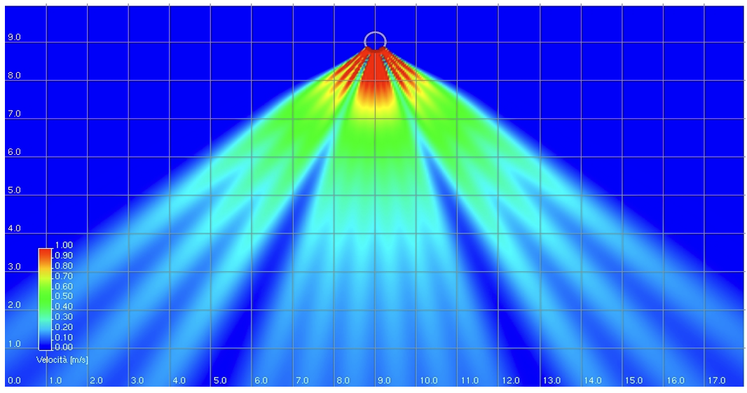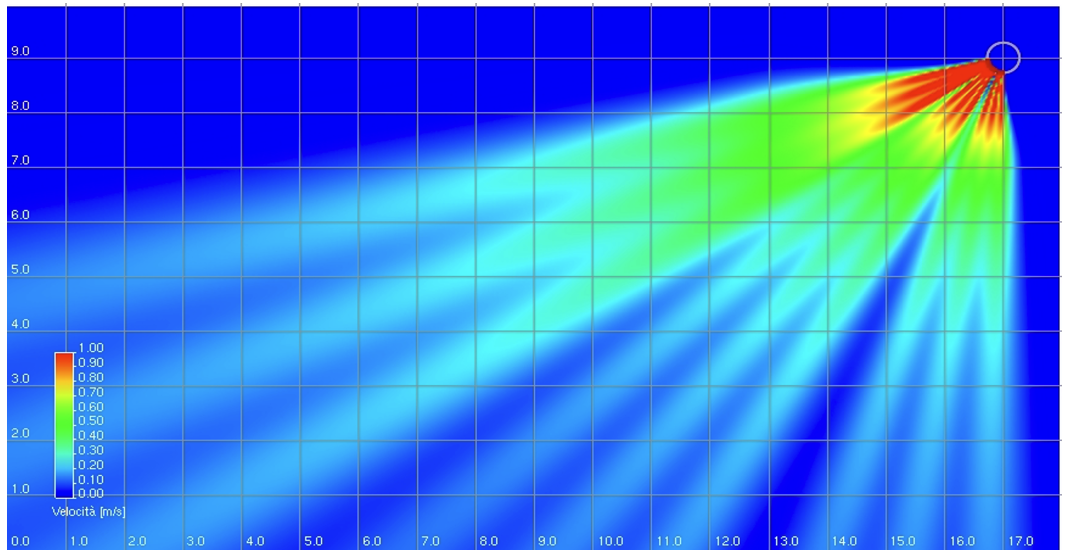 N.B. Diagrammi simulati con velocità residua 0,2 m a 1800 mm da terra in modo più conservativo rispetto alla UNI 10339 e UNI EN 13779.