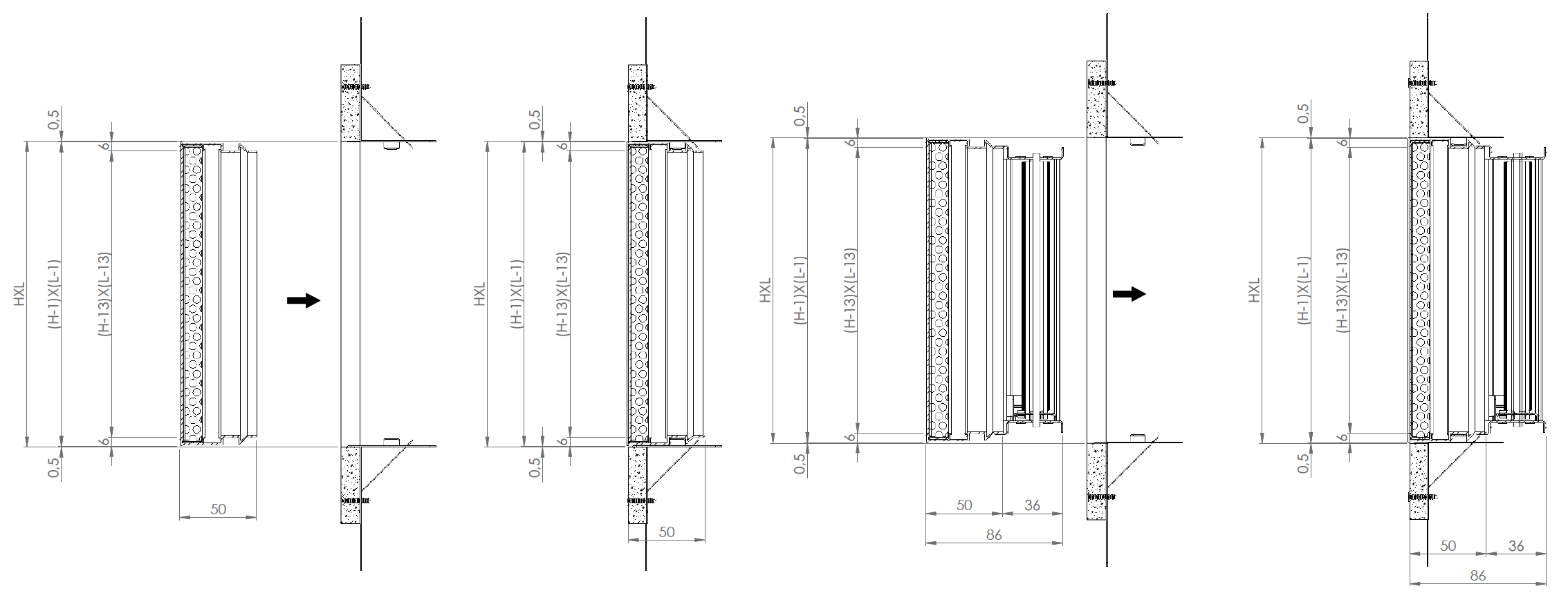 EGFF dimensioni con e senza serranda su muratura