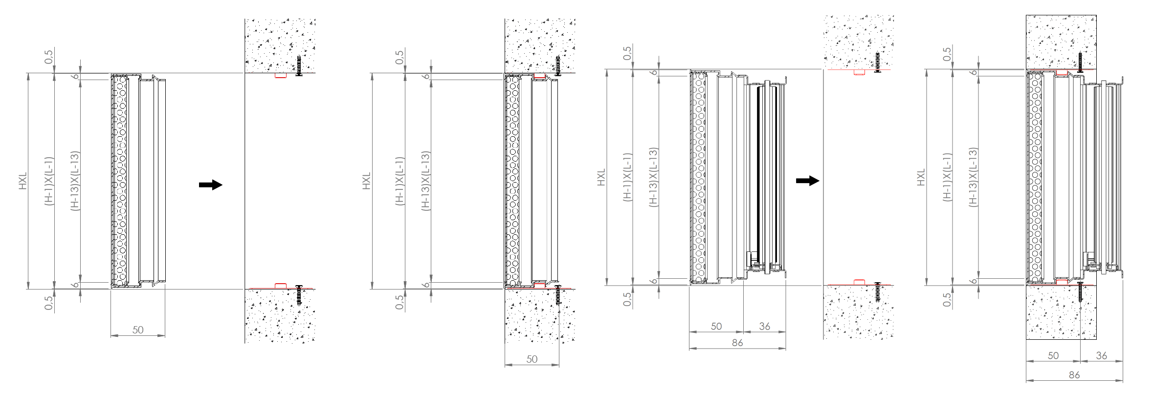 N.B. per l’installazione su parete in muratura non sono disponibili le altezze 75mm,100 mm.