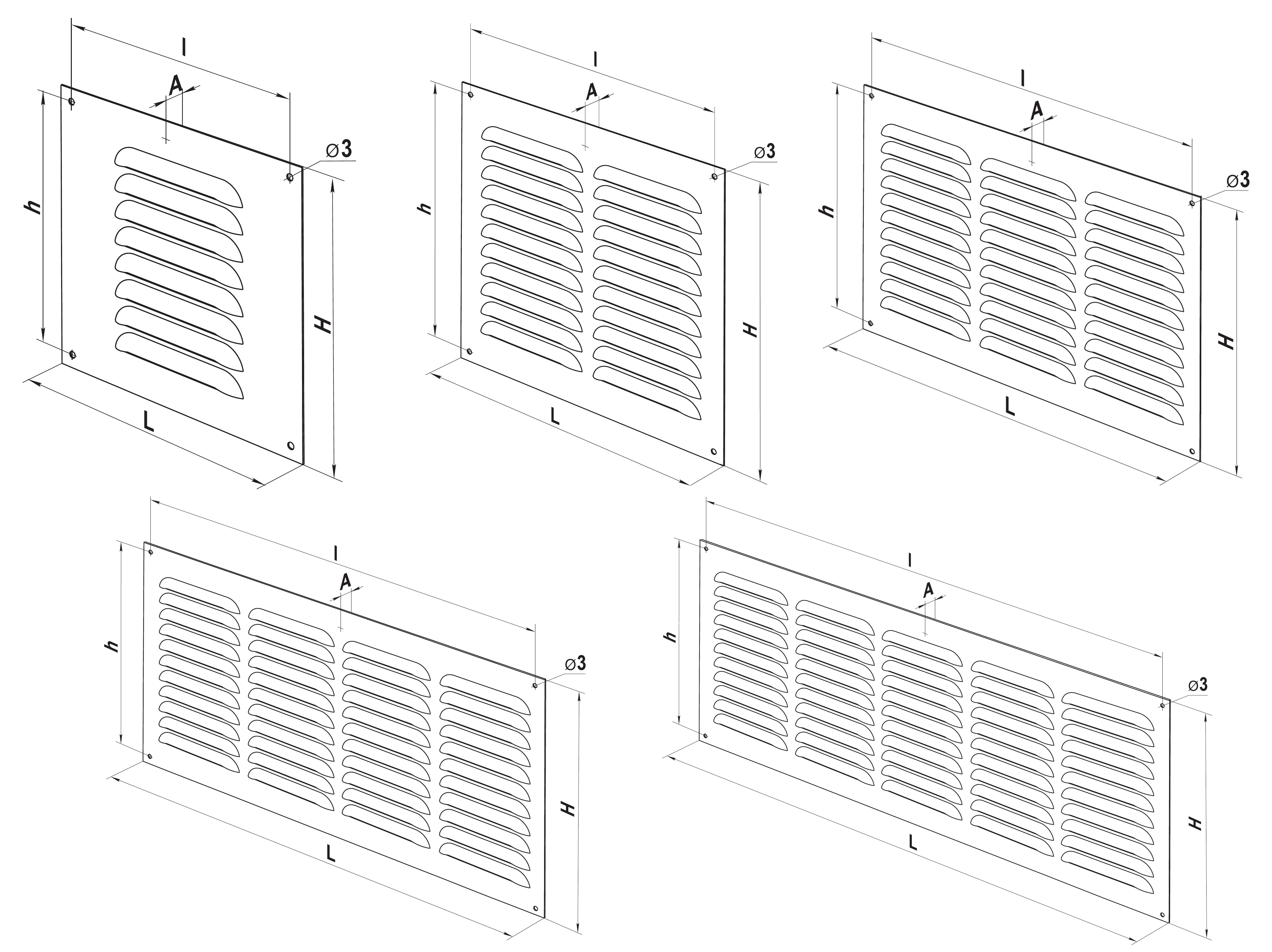 MVMPO Griglie stampate rettangolari in acciaio verniciato grigio