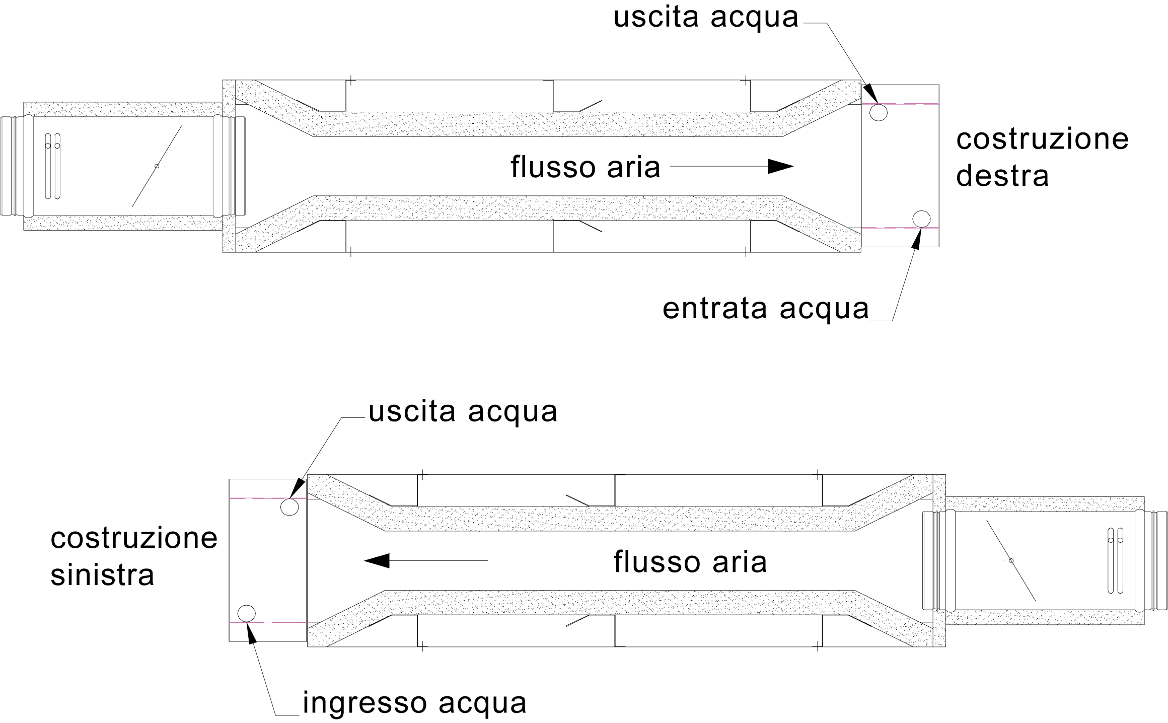 Batteria di post-riscaldamento ad acqua o elettrica (prezzi a richiesta).