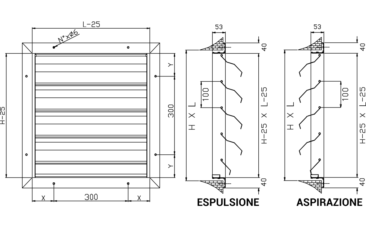 | Altezza H | Y | N°Ø 6 mm (fori per lato) |