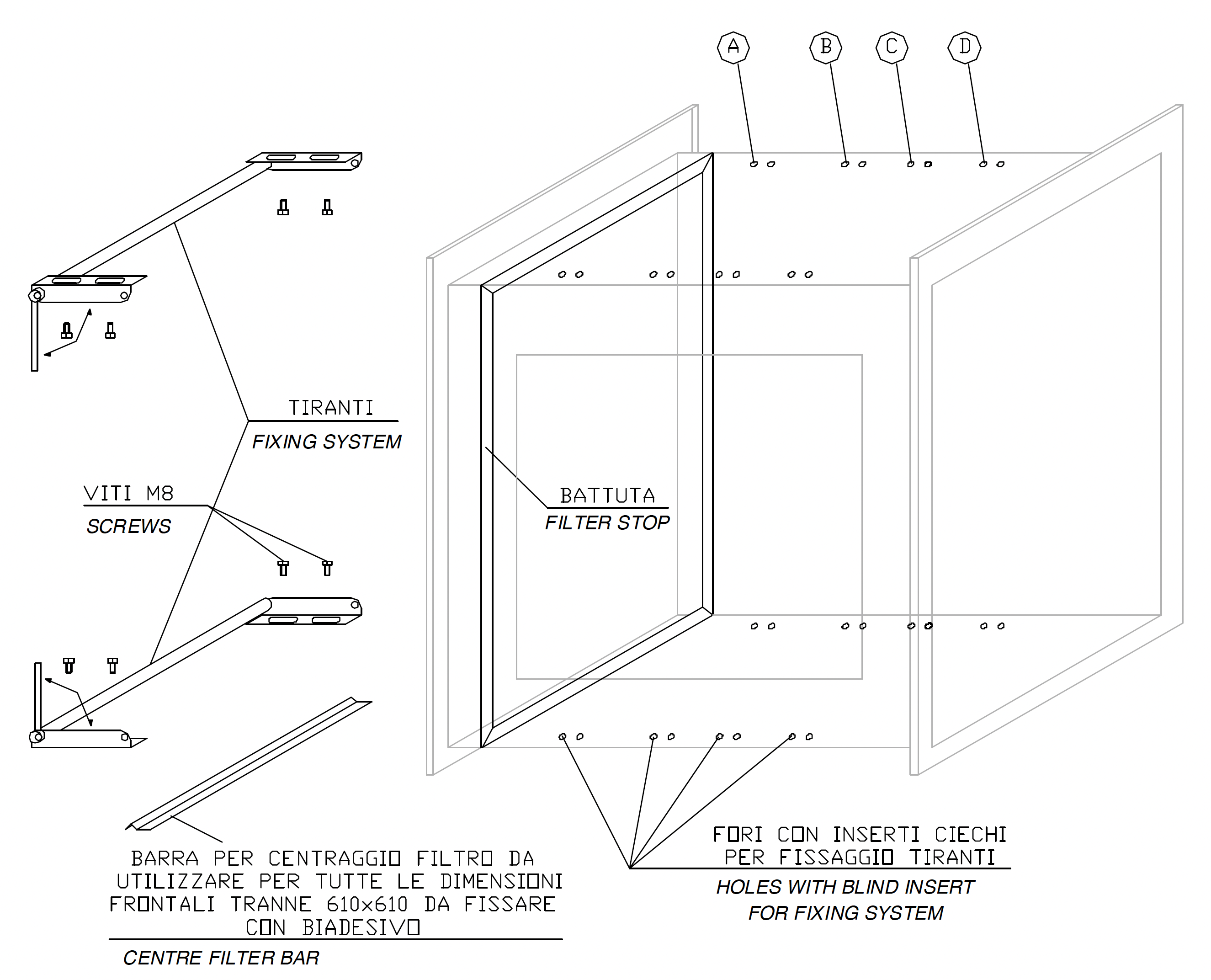 Speciale dispositivo di fissaggio dei filtri a posizione variabile in funzione dello stadio filtrante.