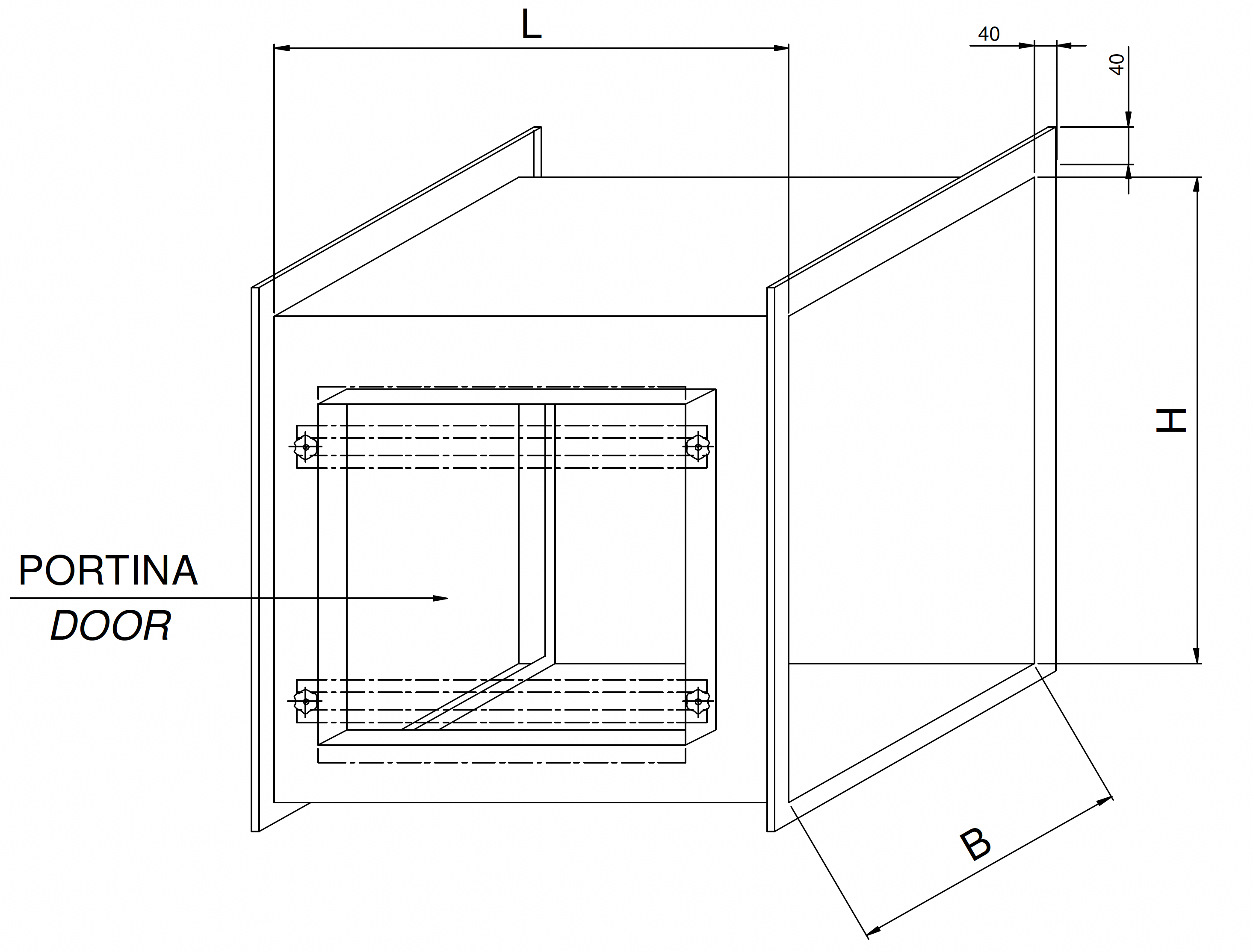 Cassonetto portafiltro a tenuta per installazione a canale con 2 stadi di filtrazione. Possibilità di installare al suo interno un filtro ondulato EFPO o un filtro a tasche rigide EFTR oppure entrambi EFPO+EFTR.