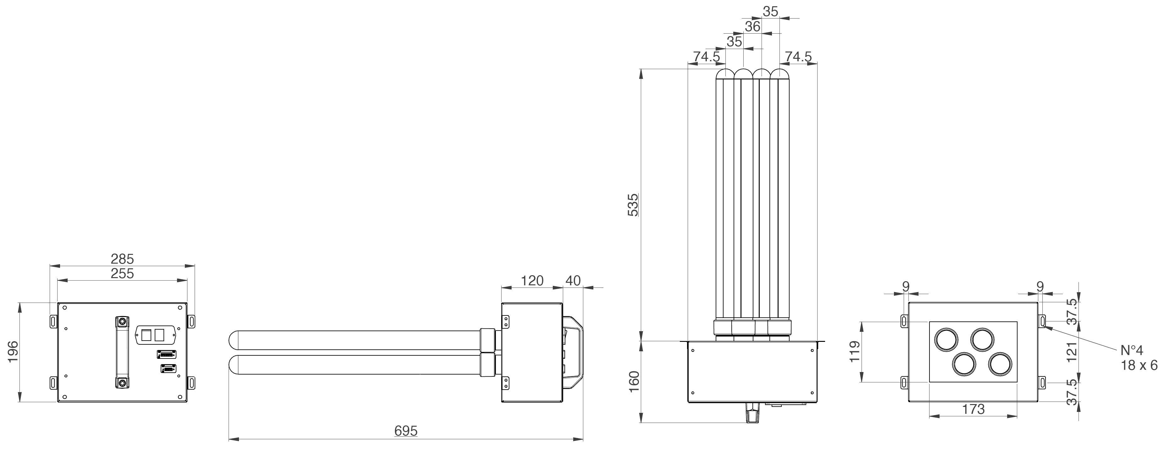 | duct 70MIC4F | Dispositivo di sanificazione dell'aria e delle superfici interne delle condotte per una portata fino a 4000 m3/h | artSB02000130 |