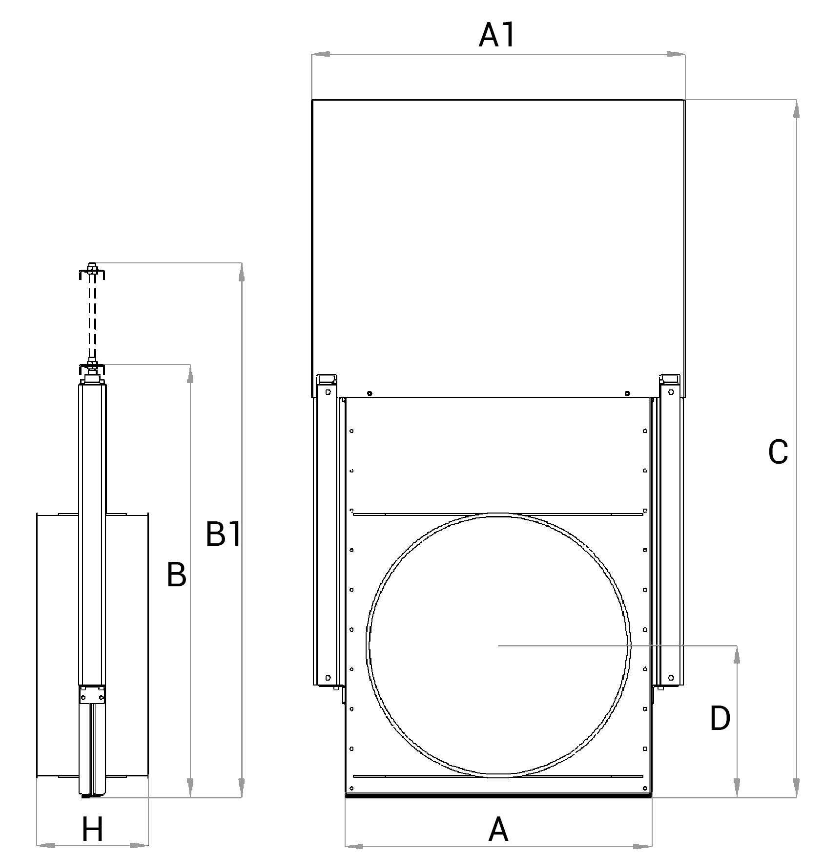 | Modello Ø | A | A1 | B | B1 | H | C | D | kg | serrande manuali SG |