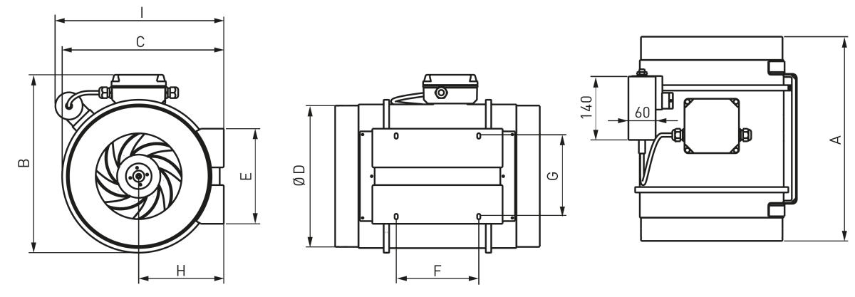 Estrattori elicocentrifughi in linea per condotti circolari a basso profilo, specificamente progettati per l’estrazione di aria in atmosfere esplosive, costruiti in lamiera di acciaio protetta contro la corrosione con verniciature poliestere di colore nero (ad eccezione del modello EVTD-800/200, costruito in materiale plastico trattato per evitare il formarsi di elettricità statica), gruppo motore-ventola estraibile senza smontare il collegamento ai condotti.