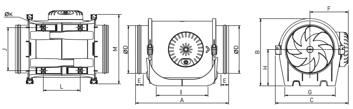 | Modello | A | B | C | ØD | E | F | G | H | I | J | ØK | L | M |