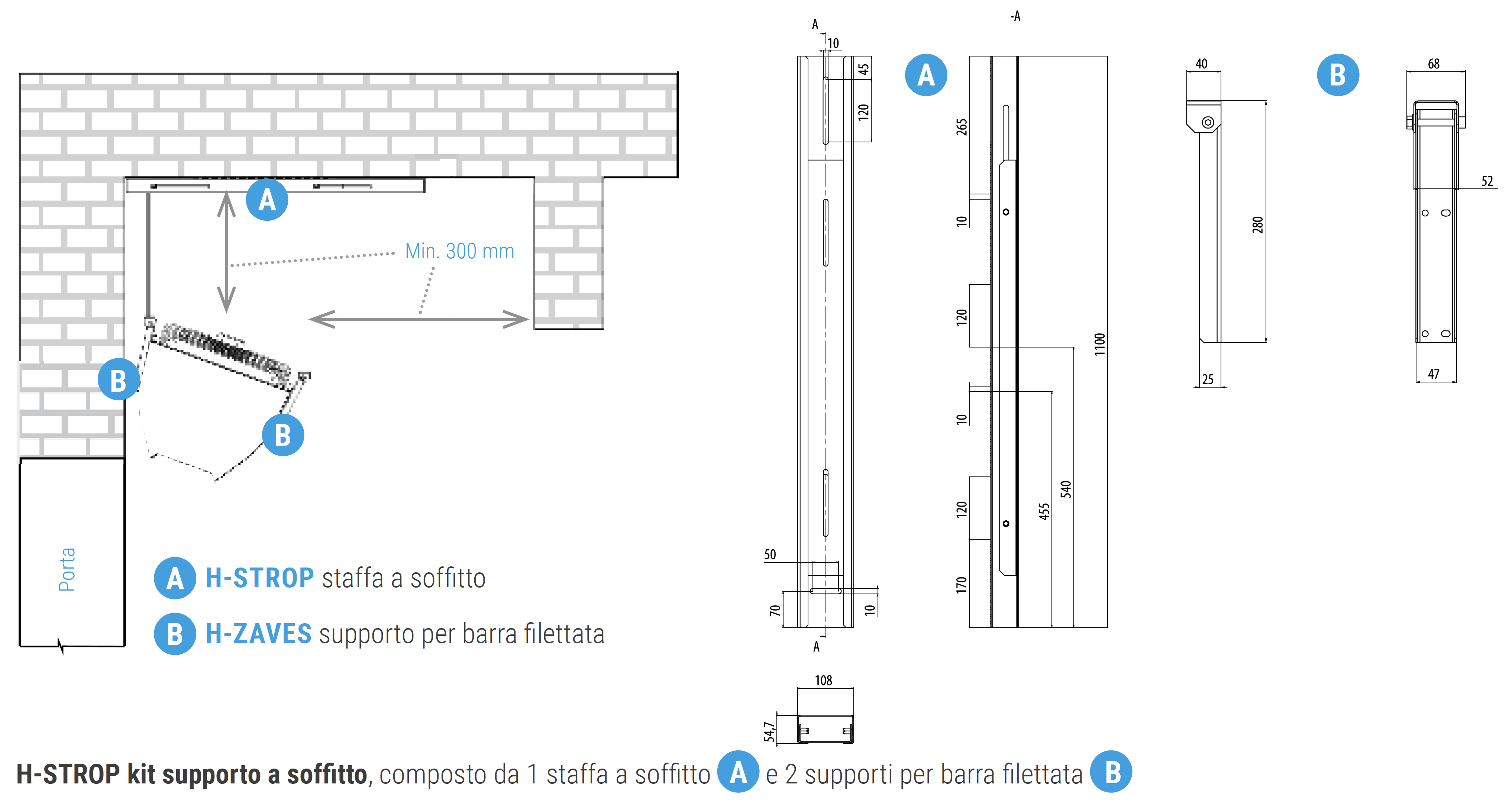 Kit supporto a soffitto per montaggio orizzontale: