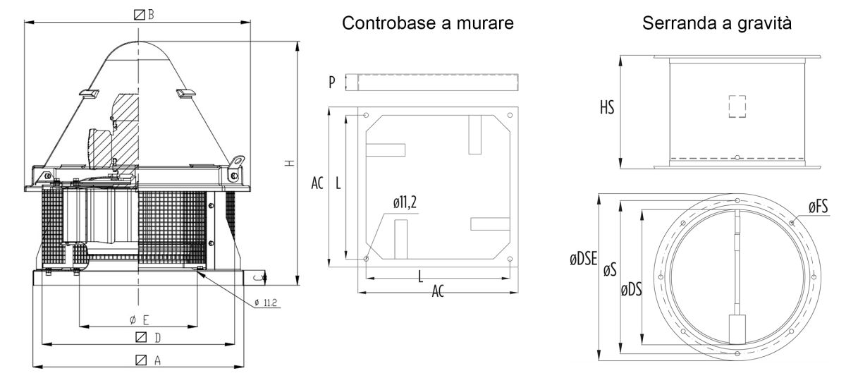 | Modello | AC | L | P | ØDS | ØS | ØDSE | ØFS | HS |