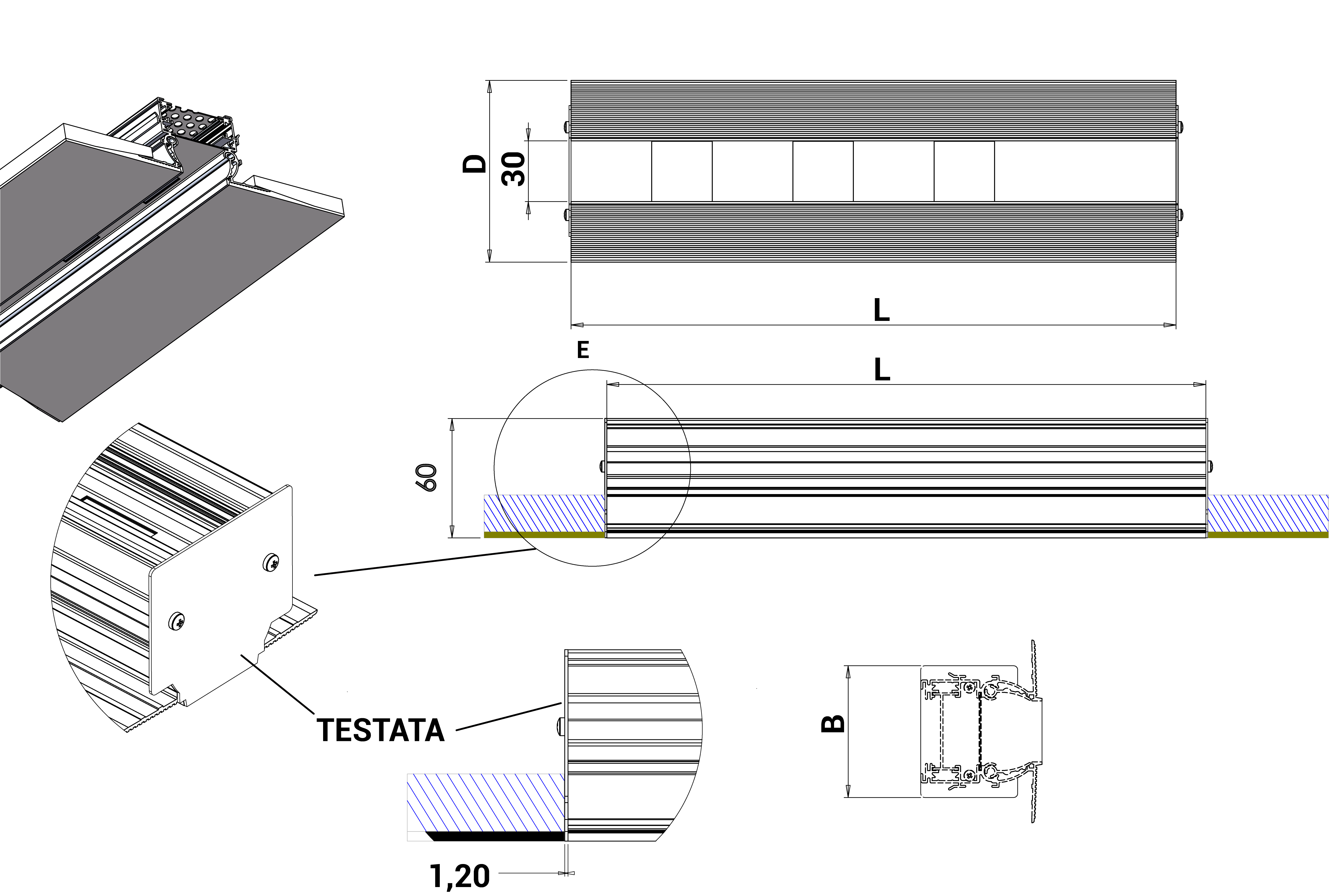 Dimensioni diffusore lineare a scomparsa