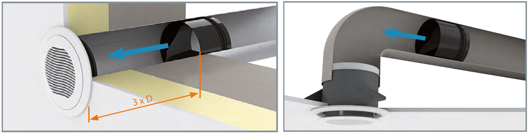 L'installazione avviene tramite inserimento del regolatore all'interno del condotto circolare sia in canali installati orizzontalmente che verticalmente.