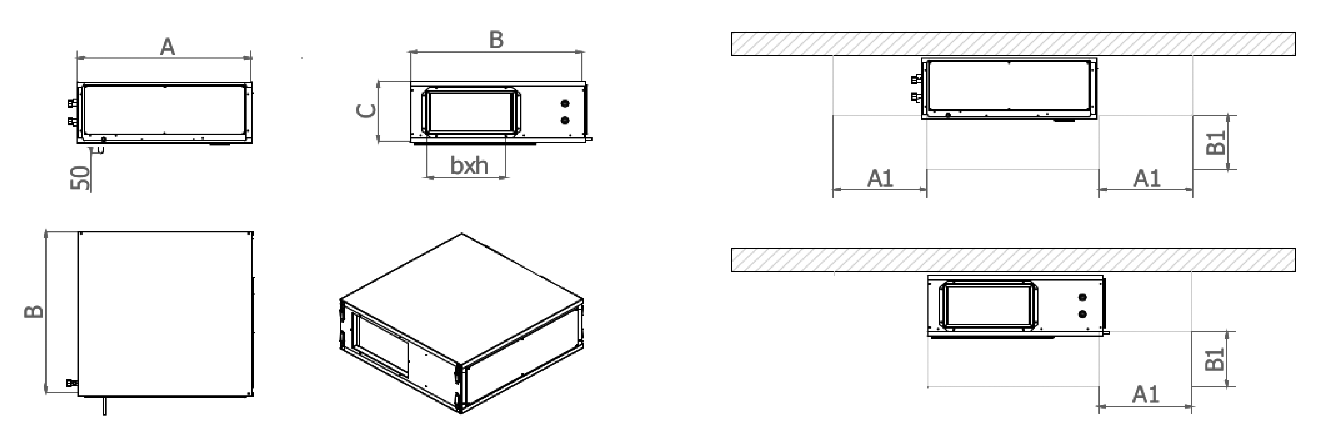 Le unità di deumidificazione EVDEH possono esser fornite idonee per esser installate su a soffitto con configurazione orizzontale.