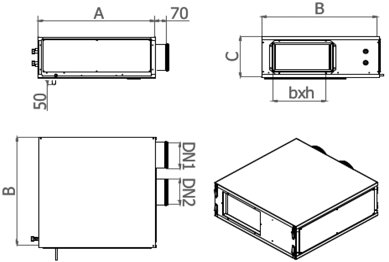 | Ingresso aria di ricircolo DN1 (non presente nella versione senza ricircolo) | mm | 160 | 200 |