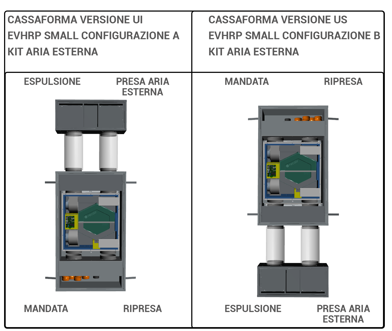 | Cassaforma da incasso per EVHRP SMALL con connessioni di mandata e ripresa aria inferiori VERSIONE UI | 887,63 |