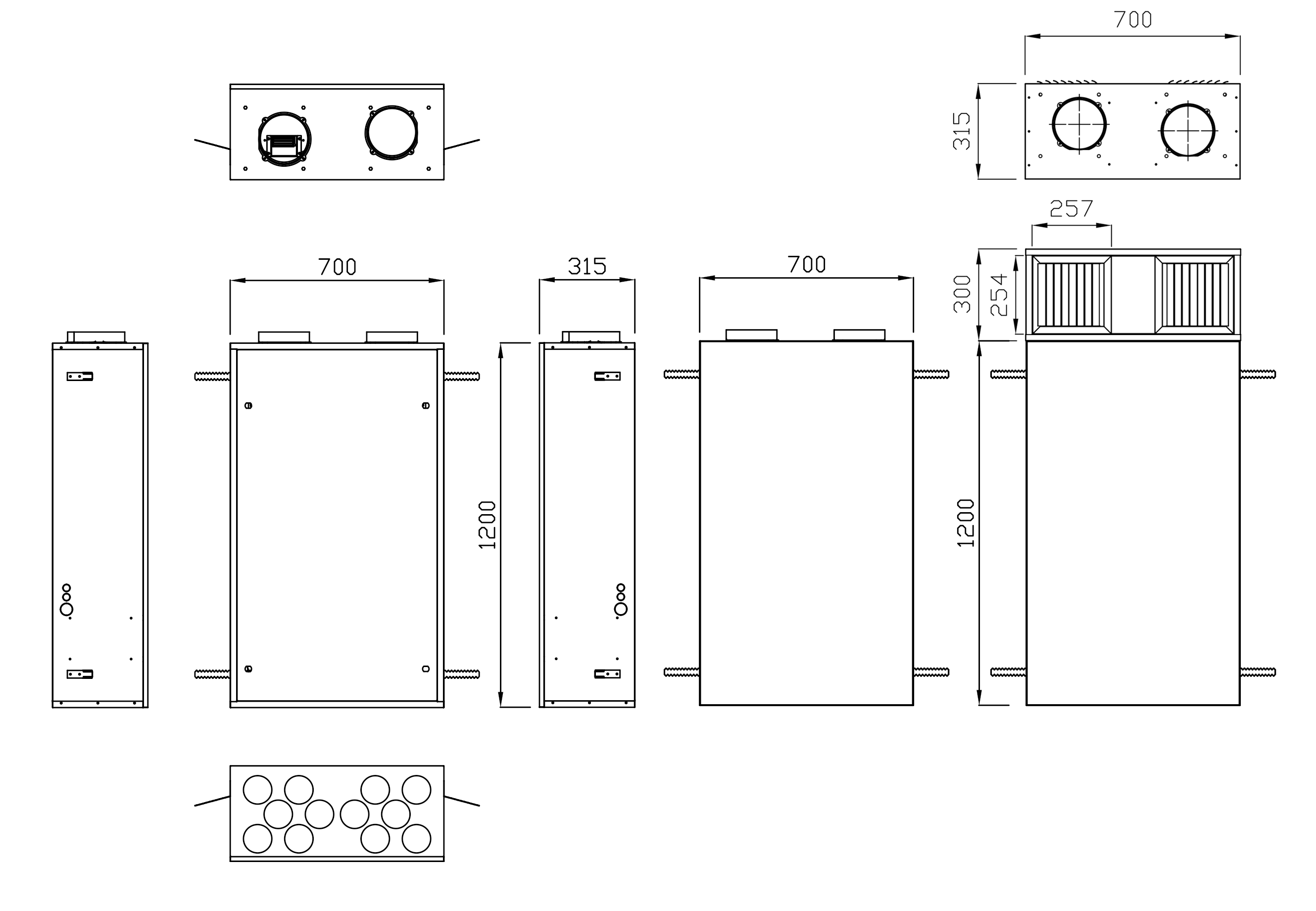 | Tipo di Ventilatori | Centrifughi a pale avanti - motore elettronico direttamente accoppiato Brushless | |||