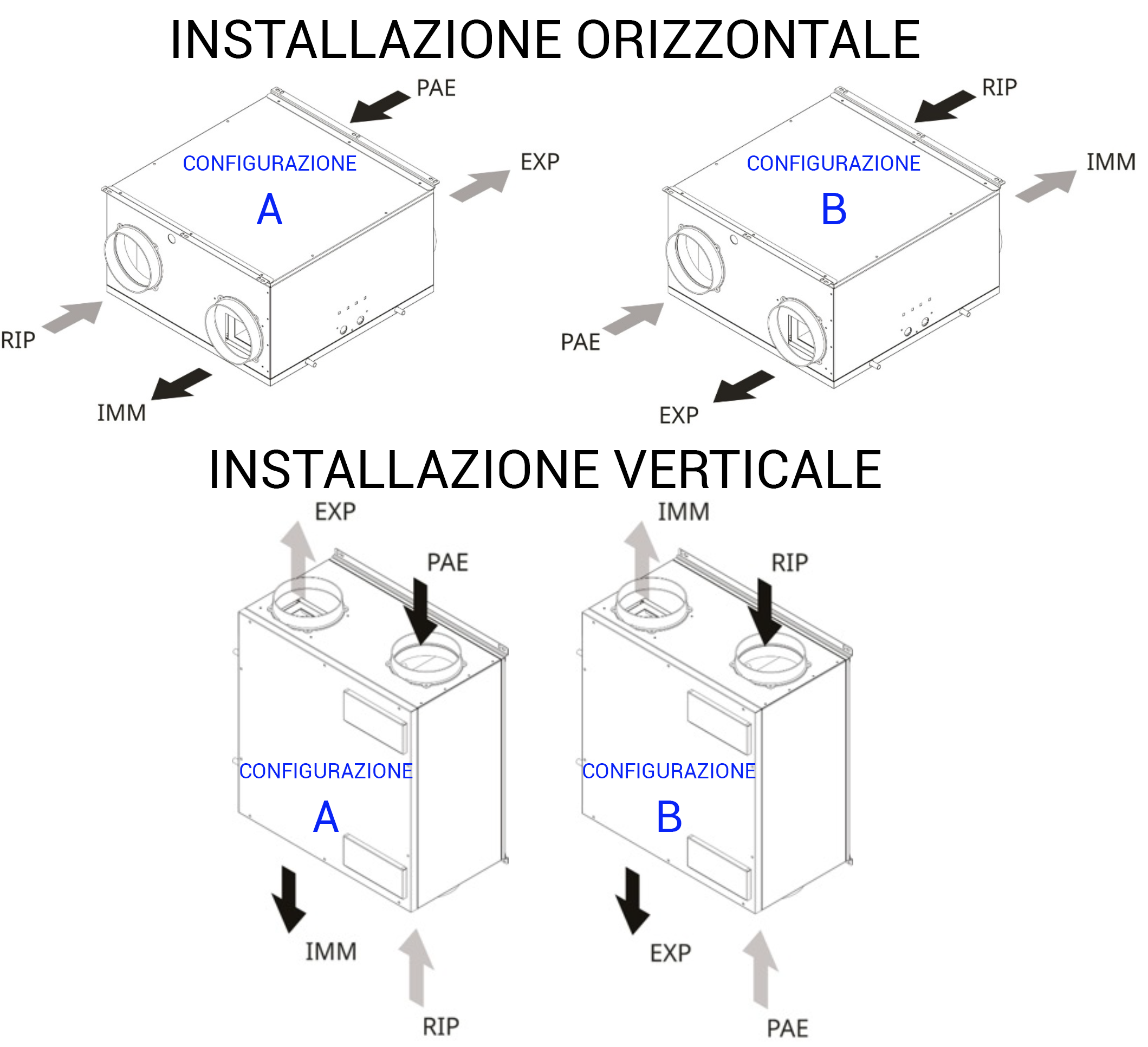| Modello | EVHRP SMALL (configurazione A) | controllo elettronico remoto EVTDV | Scatola ad incasso per EVTDV | sensore qualità dell'aria EVSQV | kit coppia filtri |