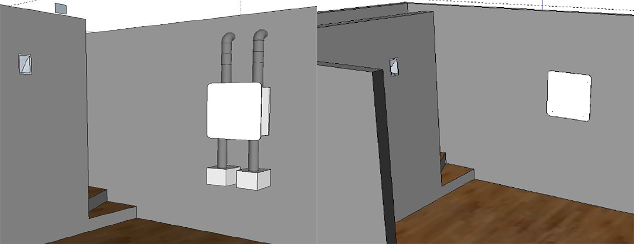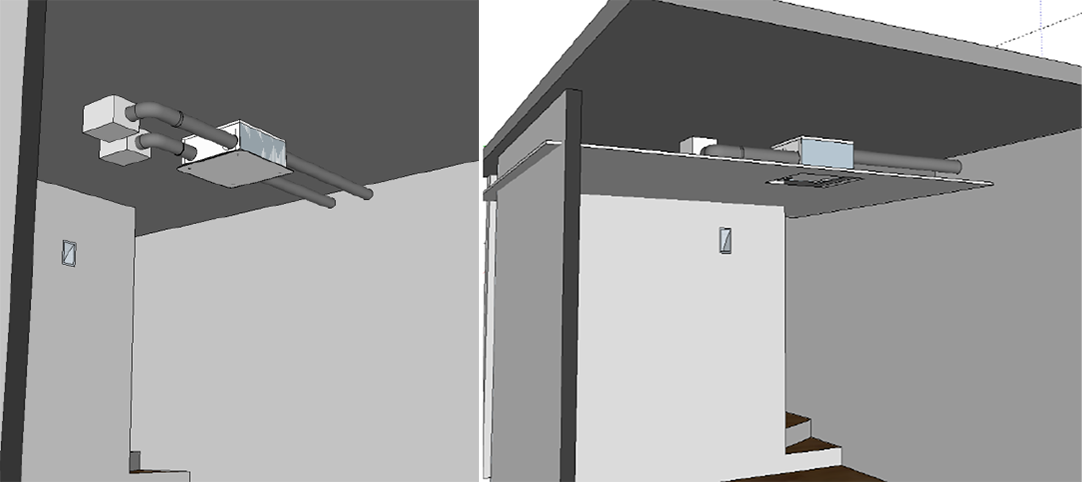 Le unità EVHRP SMALL possono essere installate anche ad incasso con l'ausilio di una speciale cassaforma con isolamento 30 mm in EPS su tutte le pareti e isolamento Foam 20 mm su pannello frontale di chiusura, studiata e progettata nei minimi particolari.