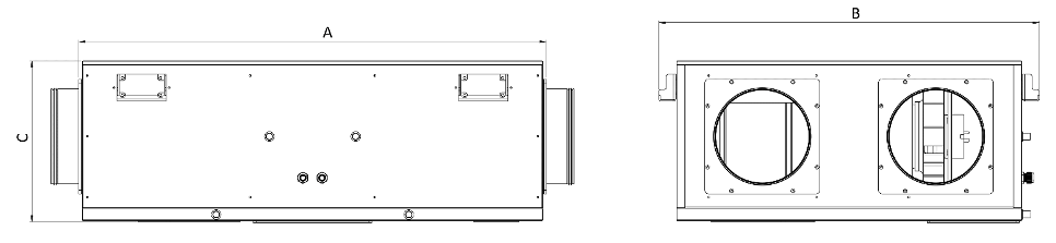 Struttura composta da telaio in lamiera zincata autoportante con Isolante adesivo in polietilene spessore 10+15mm. Vasca raccolta condensa in lamiera zincata, scambiatore di calore statico in alluminio in controcorrente con efficienza 80%, by-pass automatico, sbrinamento automatico dello scambiatore (tramite strategia anti gelo), ventilatori radiali a pale rovesce con motori EC a controllo elettronico di velocità, a basso consumo (Erp 2018 ), monofase (fino a taglia 200) e trifase (taglia 250, 300) che garantiscono elevati valori di pressione statica utile disponibile alla canalizzazione.