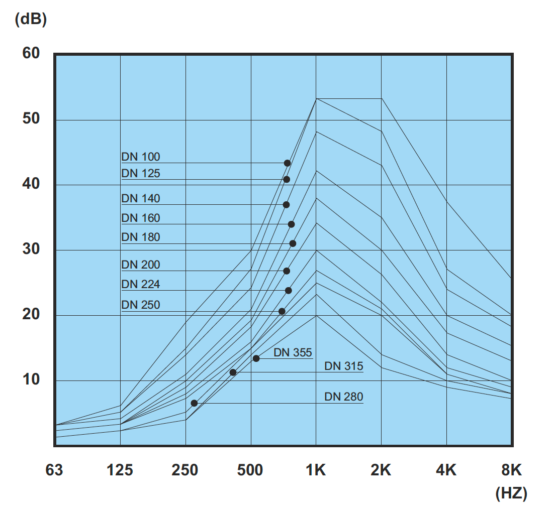 Silenziatori circolari in alluminio con isolamento in lana di vetro ad alta densità senza ogiva centrale.