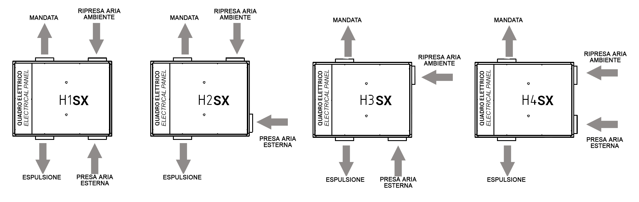 - se non espressamente indicato in fase d'ordine la configurazione prodotta sarà H1SX.