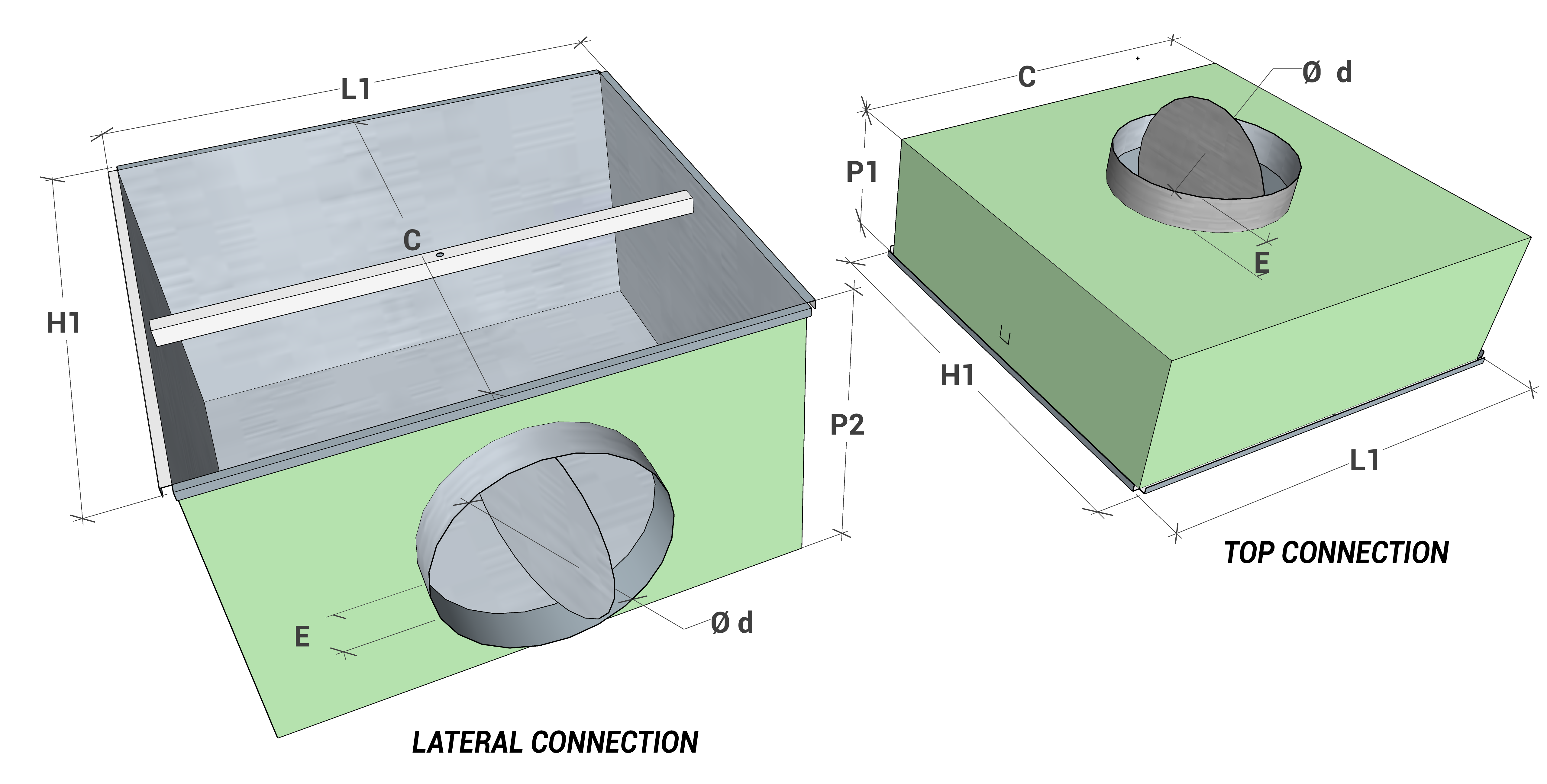 | EPZ-EDE | Plenum Box in galv.steel for diffuser | 90,96 | 106,02 | 124,93 | 156,25 |