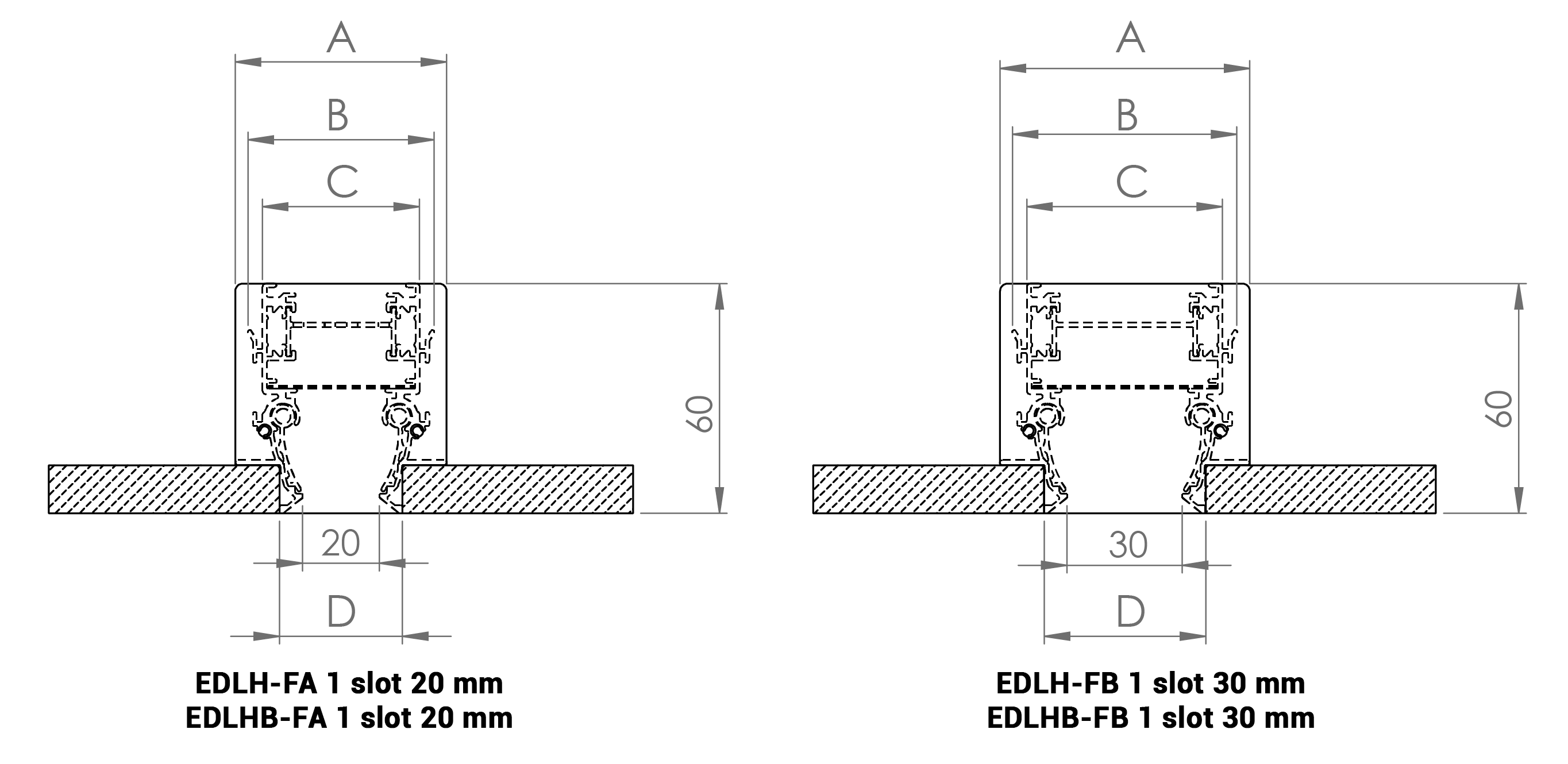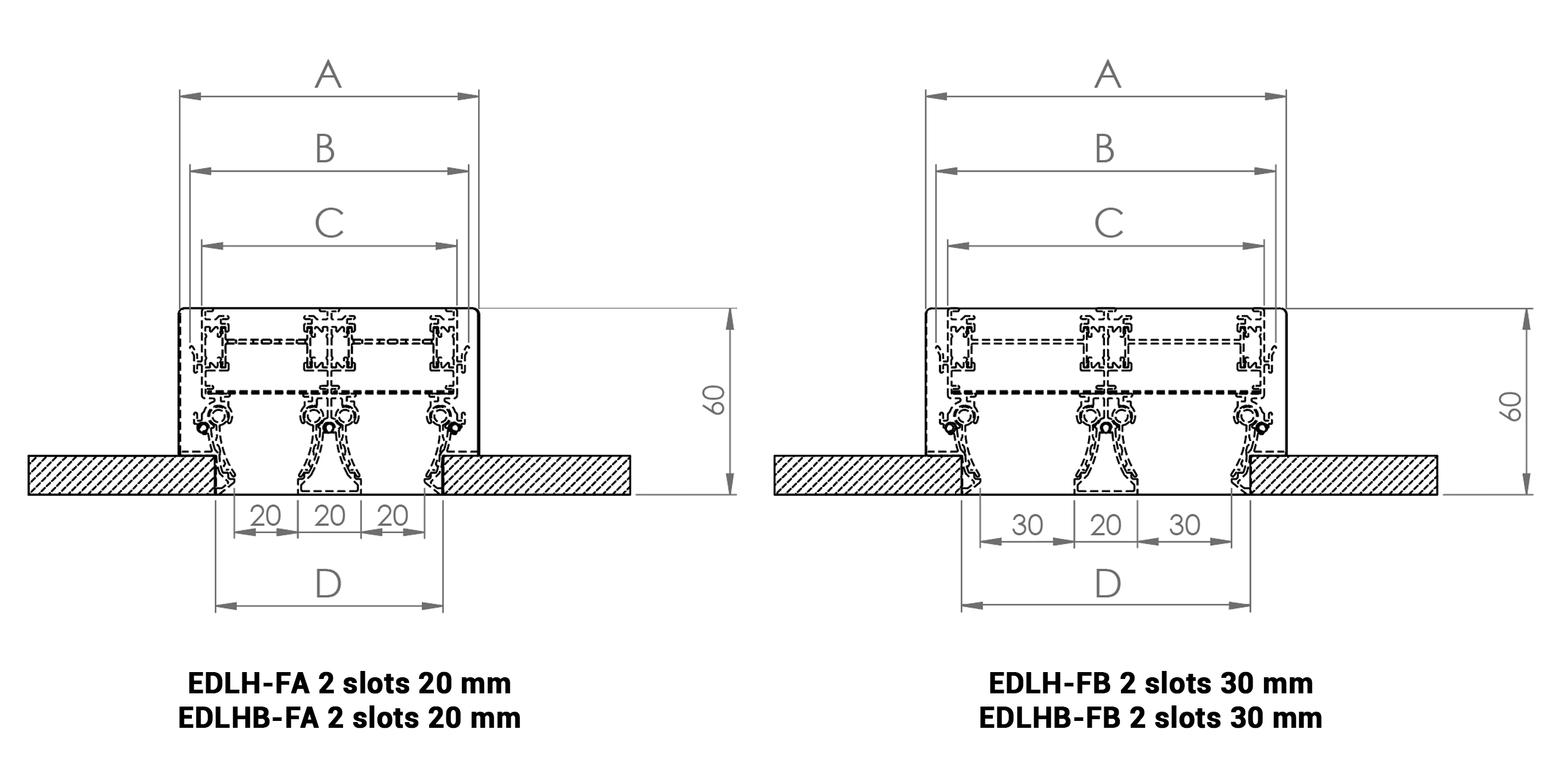 EDLH - EDLHB two slot dimensions