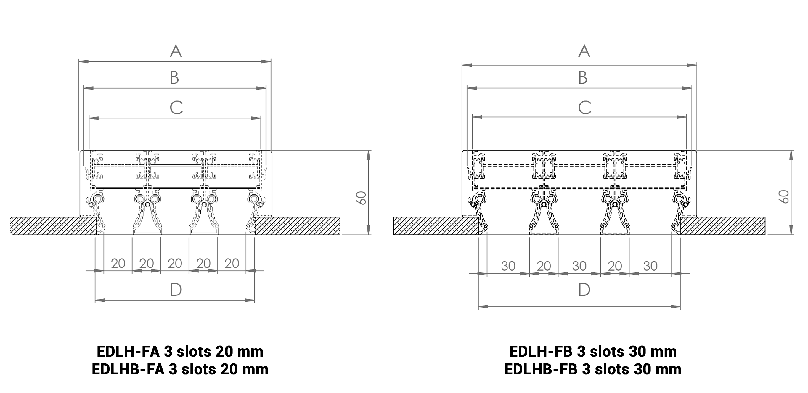 EDLH - EDLHB three slot dimensions
