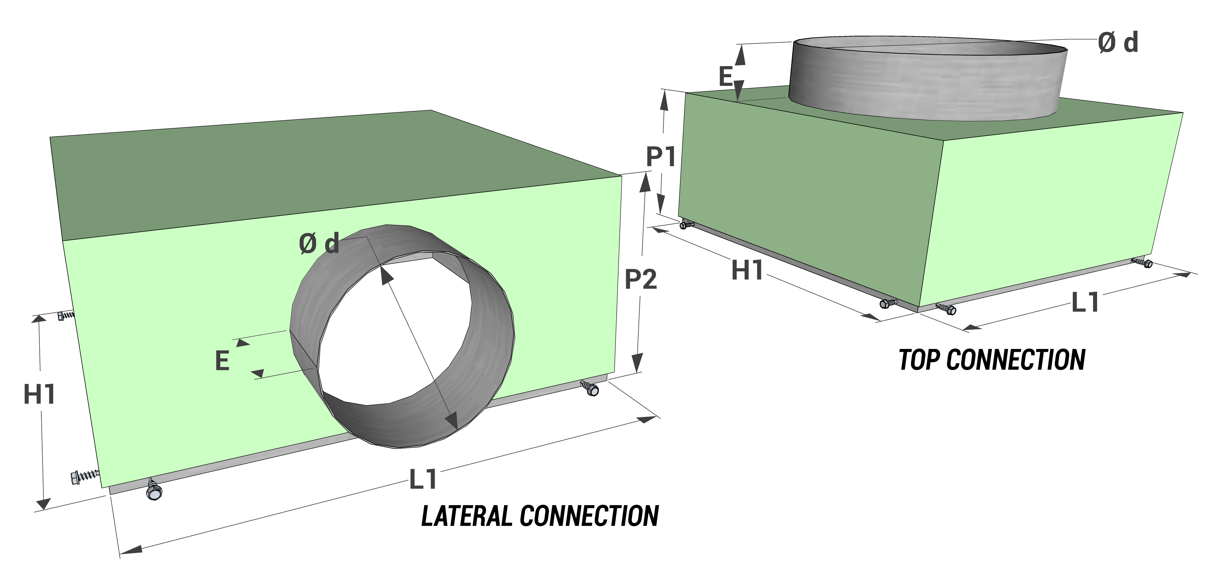 - EPI-EDQ galvanised steel insulated plenum.