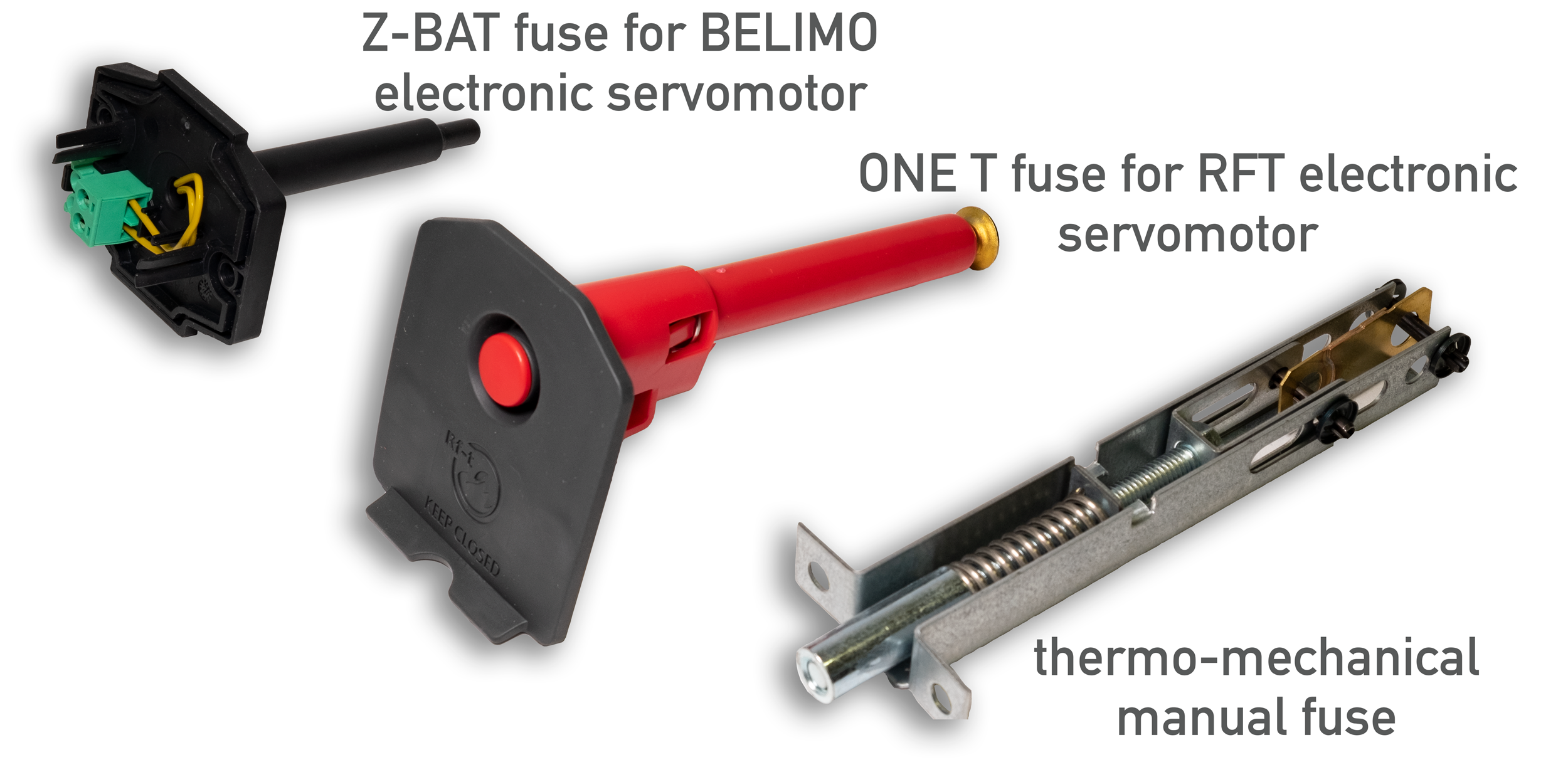 • the opening status of the fire damper is visible via an indicator located on the actuator; in addition to this, an LED indicates whether the device is powered;