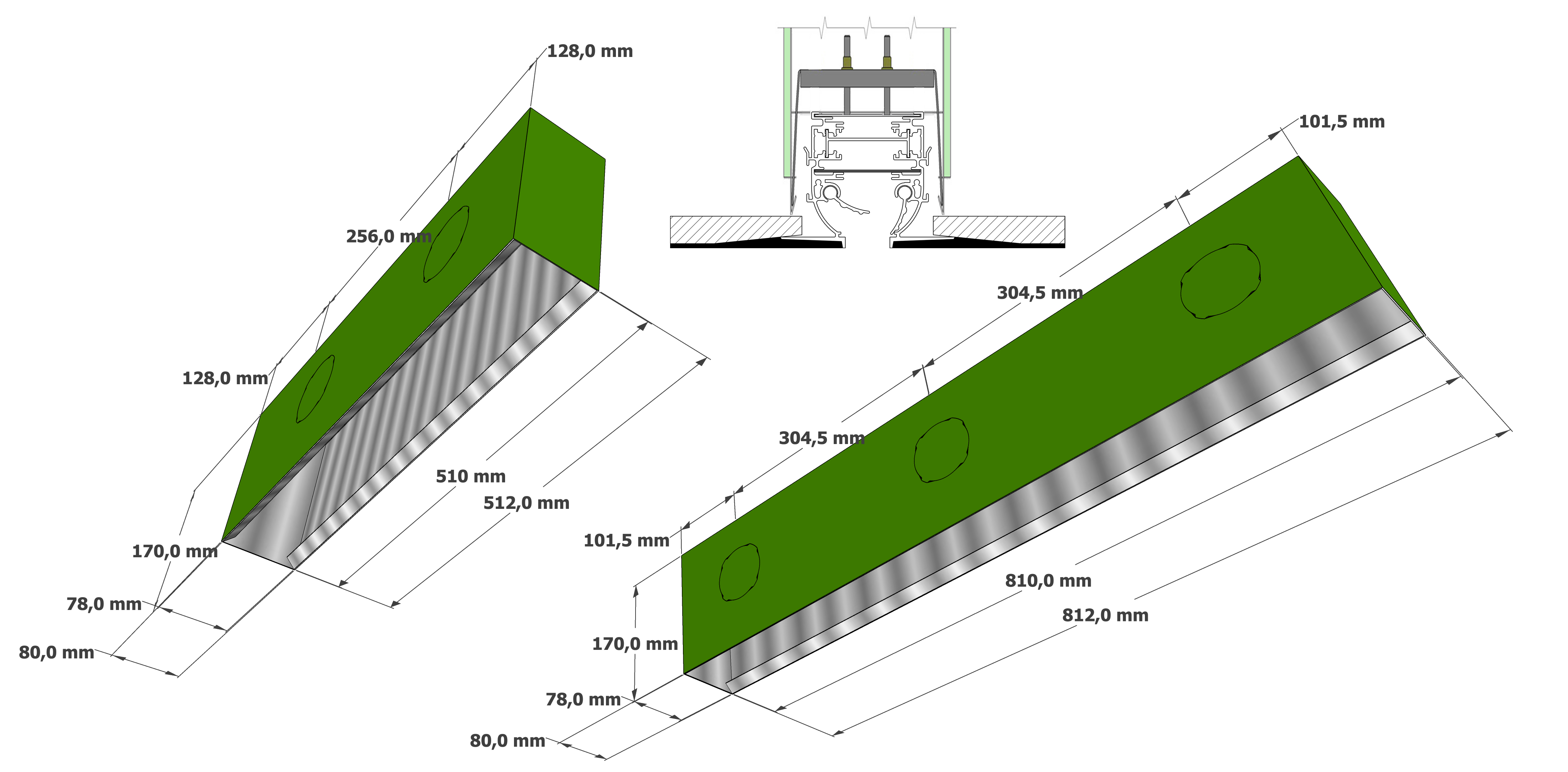 Plenum dimensions and mounting system with fixing bridges
