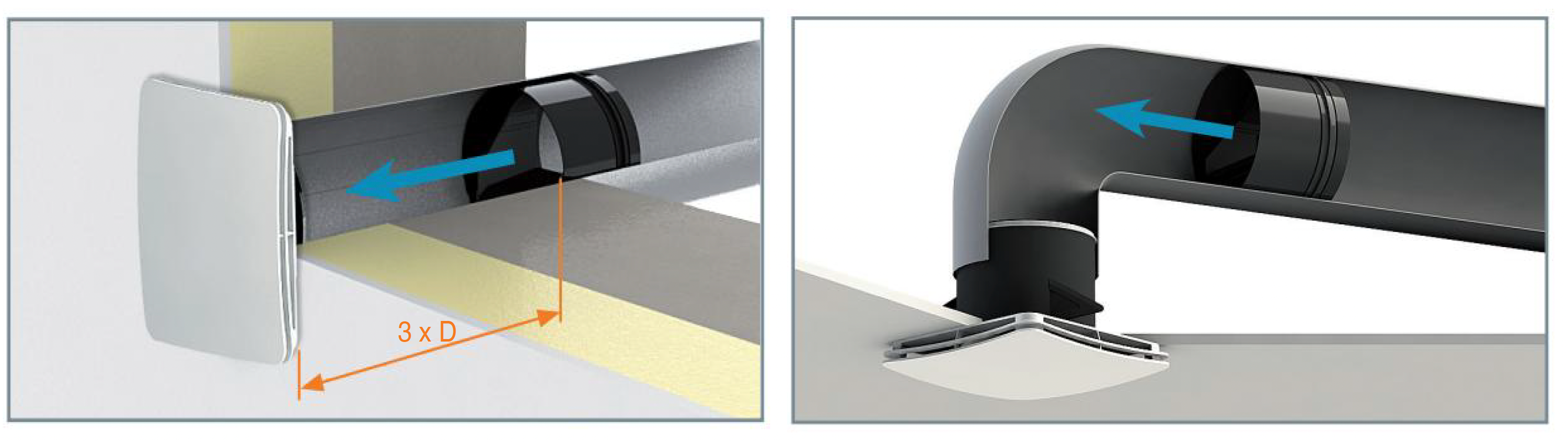 The diffusers can also be used without deflectors, thus obtaining a 4-way throw. Furthermore, installation in combination with ERDR series ribbed flow regulators is possible. The installation can be carried out on any duct from Ø 80 mm to Ø 200 mm. It is also possible to install the diffuser on plasterboard false ceilings using the EVREA-M sleeve.