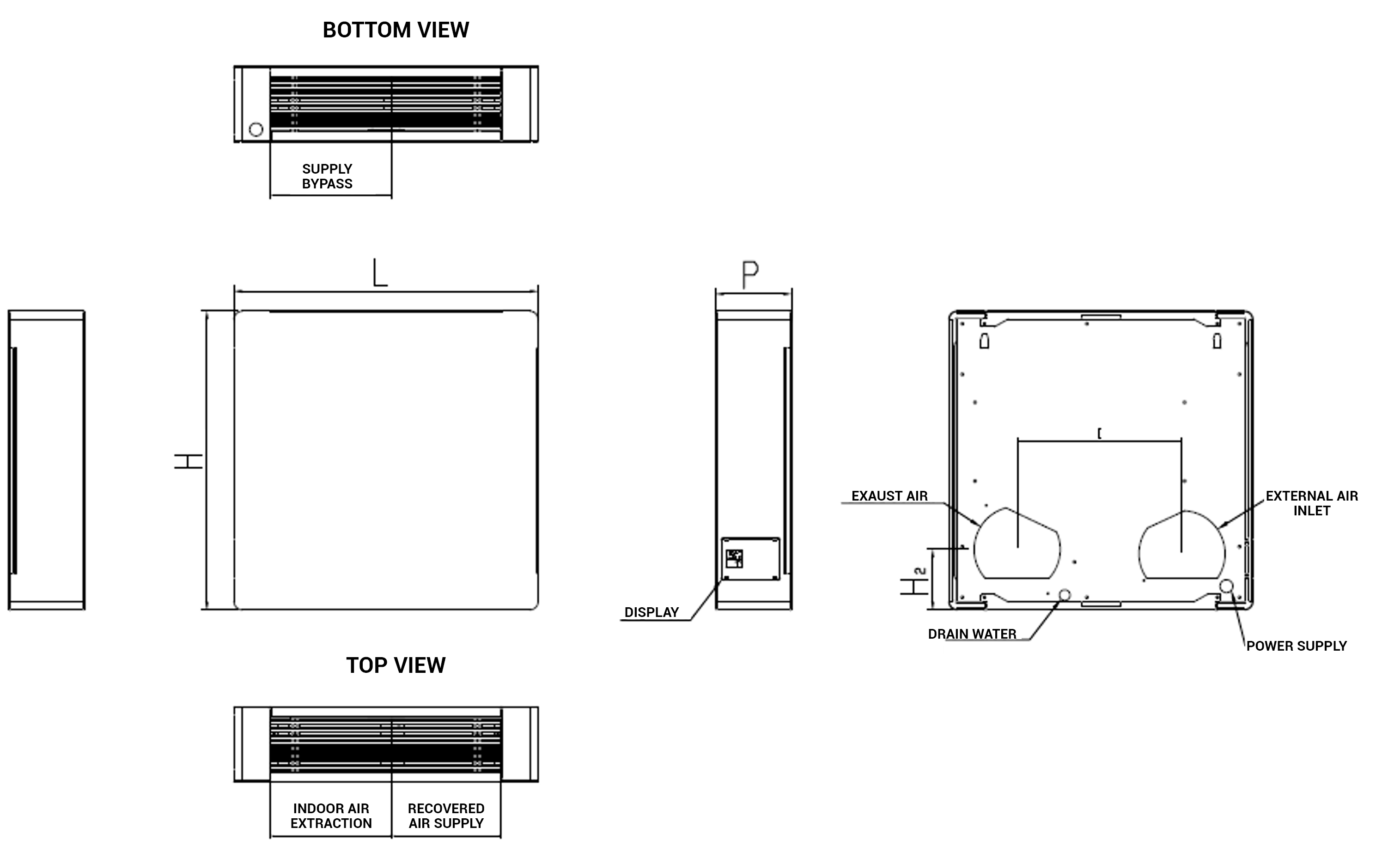 -Self-supporting sheet metal frame with polyethylene insulated internal structure. RAL9003 painted external shells. -High efficiency counter-current cross-flow polypropylene heat exchanger. Low freezing temperatures. Very high heat exchange efficiency. Available in sensible or enthalpy operation. -Forward-curved Brushless centrifugal fans with electronic motor and modulating control; very high efficiency and low noise levels. -ePM1 80% filters with low pressure drop for both supply and exhaust, easily removable. -Free cooling made with automatic management by means of temperature probes.