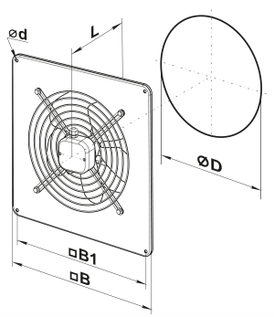 Helicoidal wall fans with square painted panel and external rotor single phase motor.